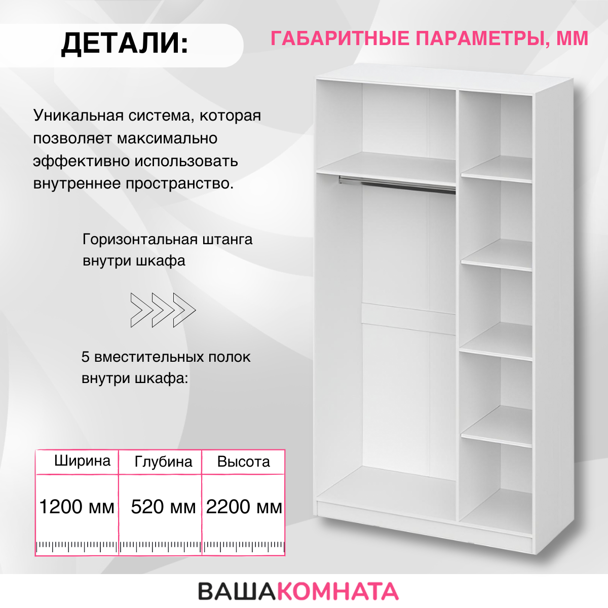Шкаф для одежды распашной Нонтон Луас, 120 см, 7 полок и штанга, белый глянец