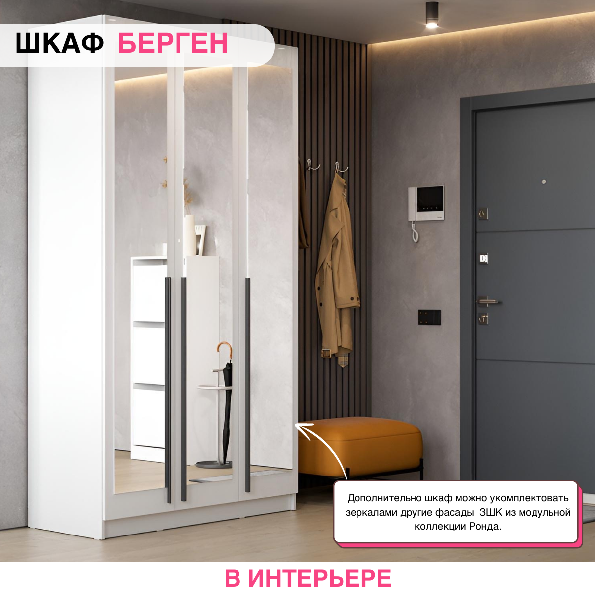 СохранитьШкаф "Берген", с зеркалом, белый, распашной, для одежды интересное: