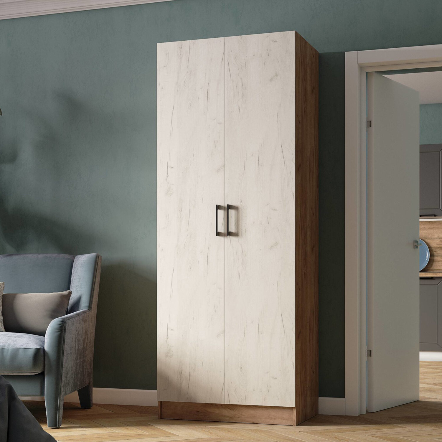 Купить Шкаф для одежды, 80х220 см, ЛДСП, дуб крафт табачный/дуб крафт белый, Вегас