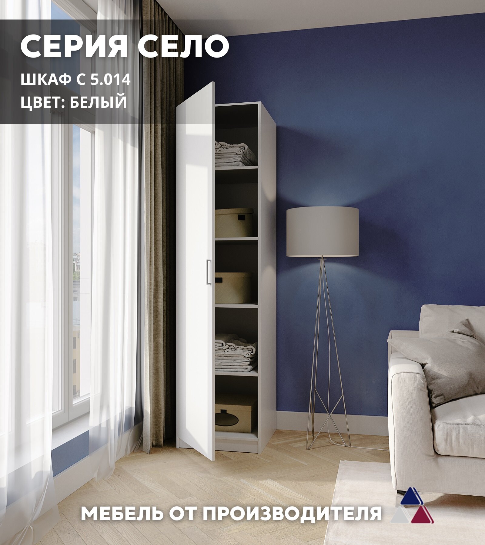 Шкаф 1-дверный с полками С 5.014 Село, 50х199,5х54 см. (Корпус белый, Фасад белый)