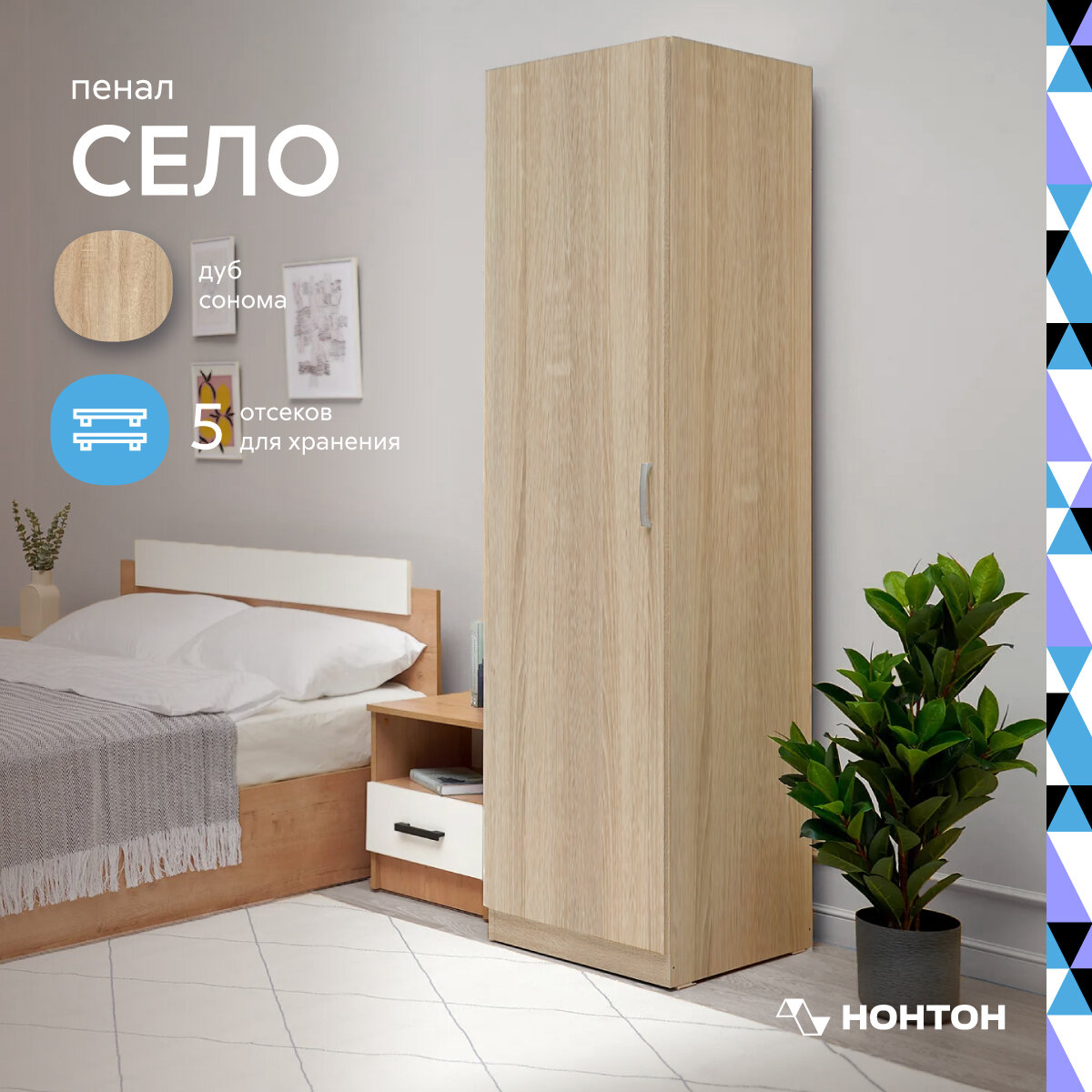 Шкаф-пенал для одежды Нонтон Село, дуб сонома 50 см интересное: