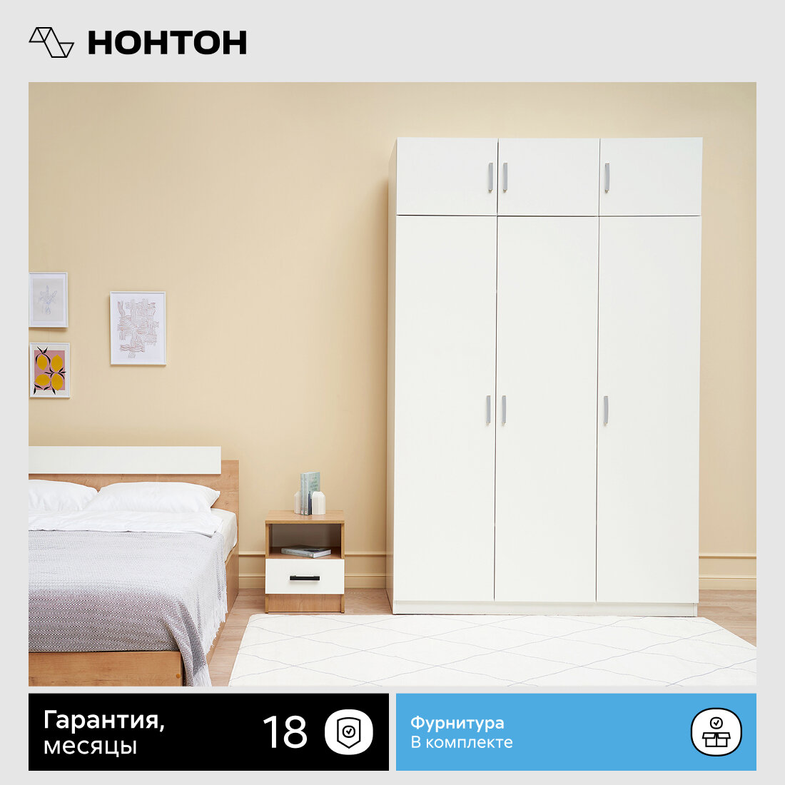 Шкаф для одежды Нонтон Село белый, 151 см интересное: