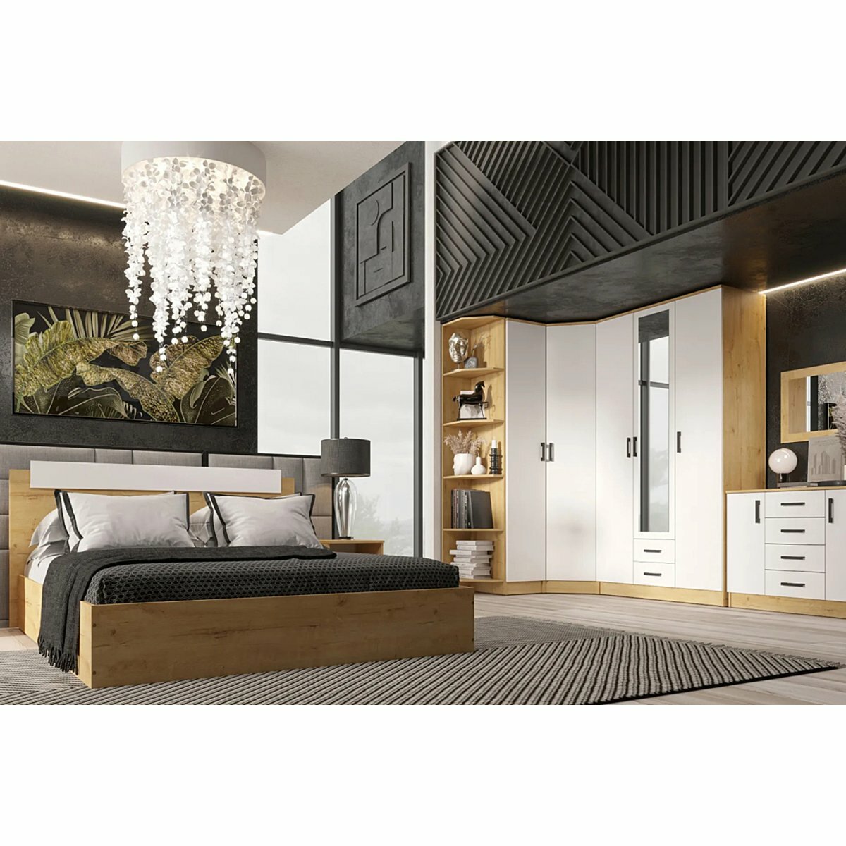 Шкаф угловой "Эко" - Дуб Вотан-Белый гладкий