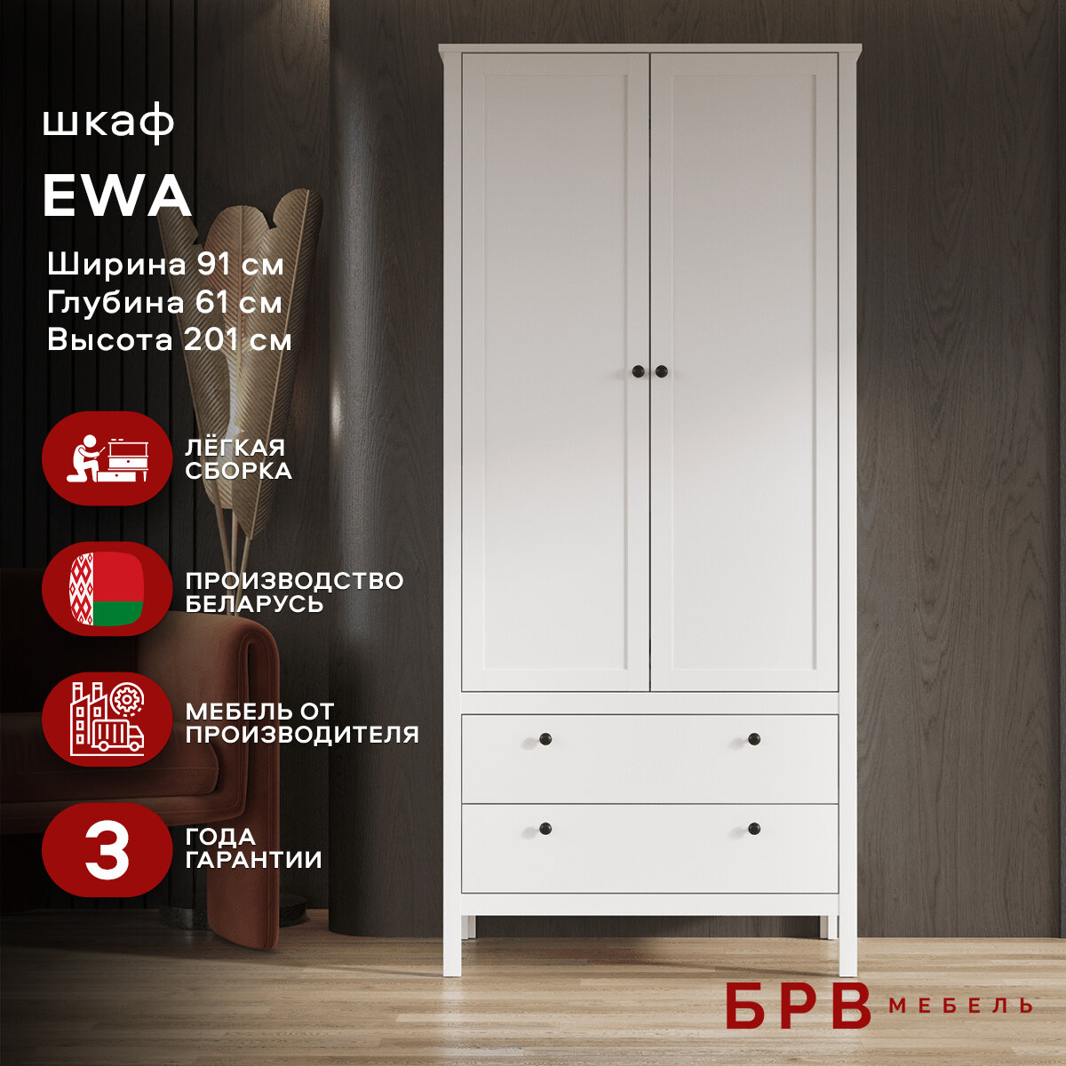 БРВ-Мебель Шкаф платяной двухдверный с двумя ящиками шириной 91 см EWA SZF2D2S белый