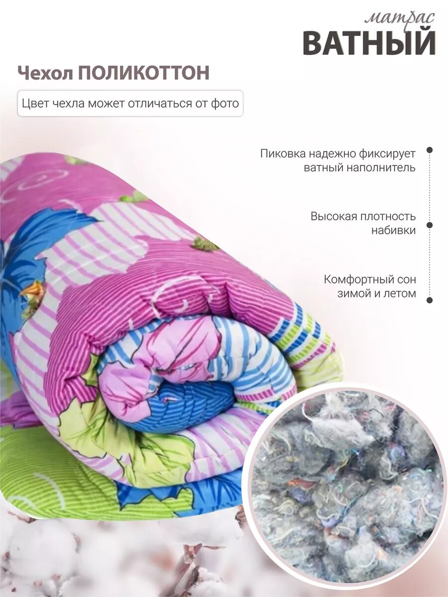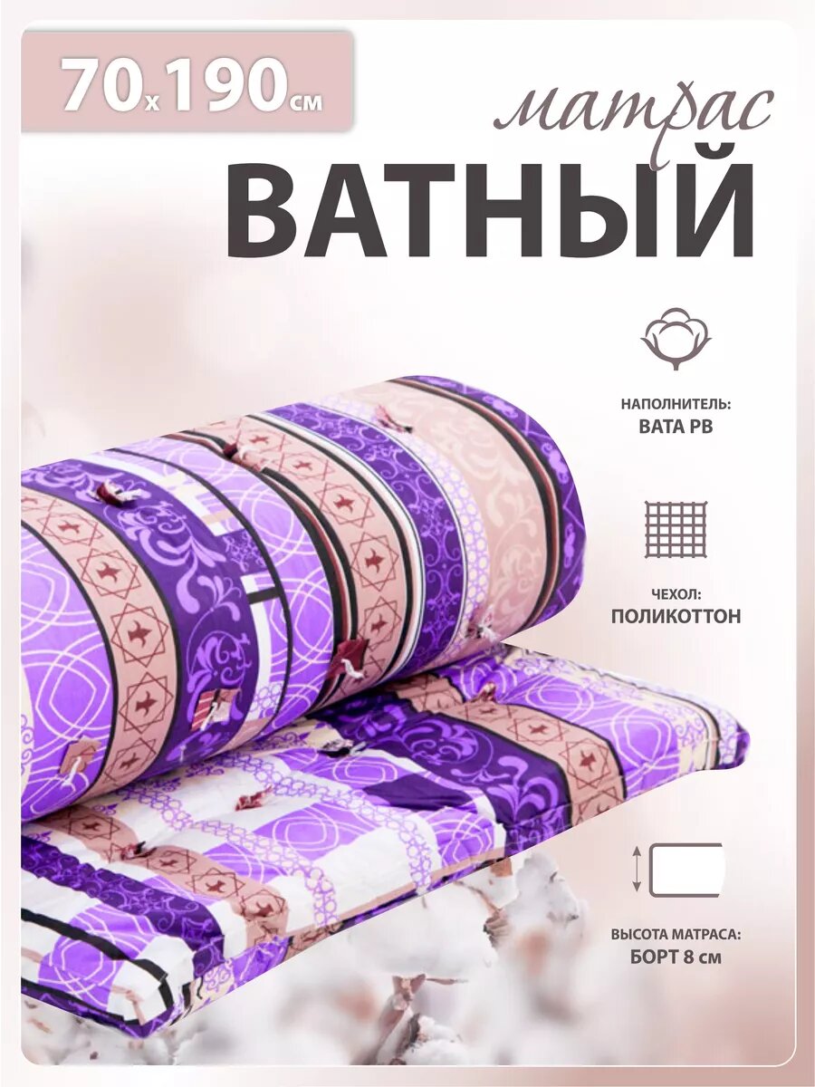 Матрас ватный Эконом, беспружинный, гипоаллергенный, 70x190х8 см интересное: