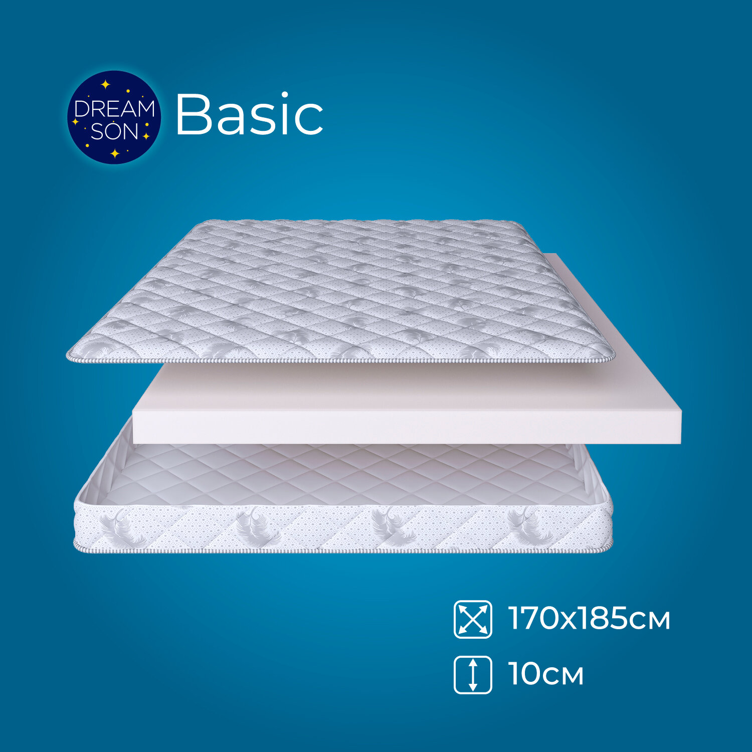 Купить Матрас DreamSon Basic 170х185, высота 10 см, анатомический, беспружинный, в кровать, двуспальный, средней жесткости