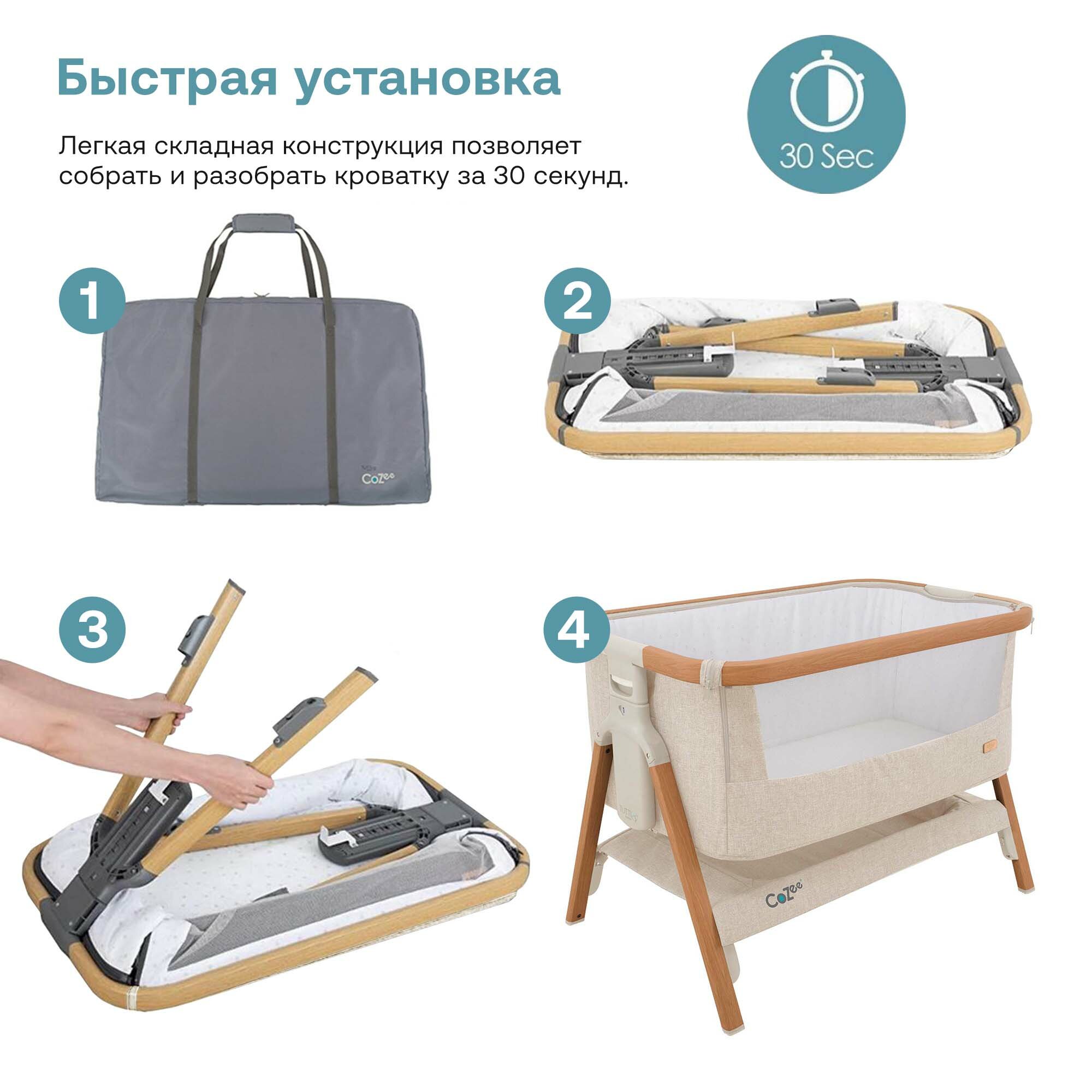 Прикроватная колыбель - Tutti Bambini CoZee, цвет Ecru / Scandinavian Walnut (Бежевый / Скандинавский орех) интересное: