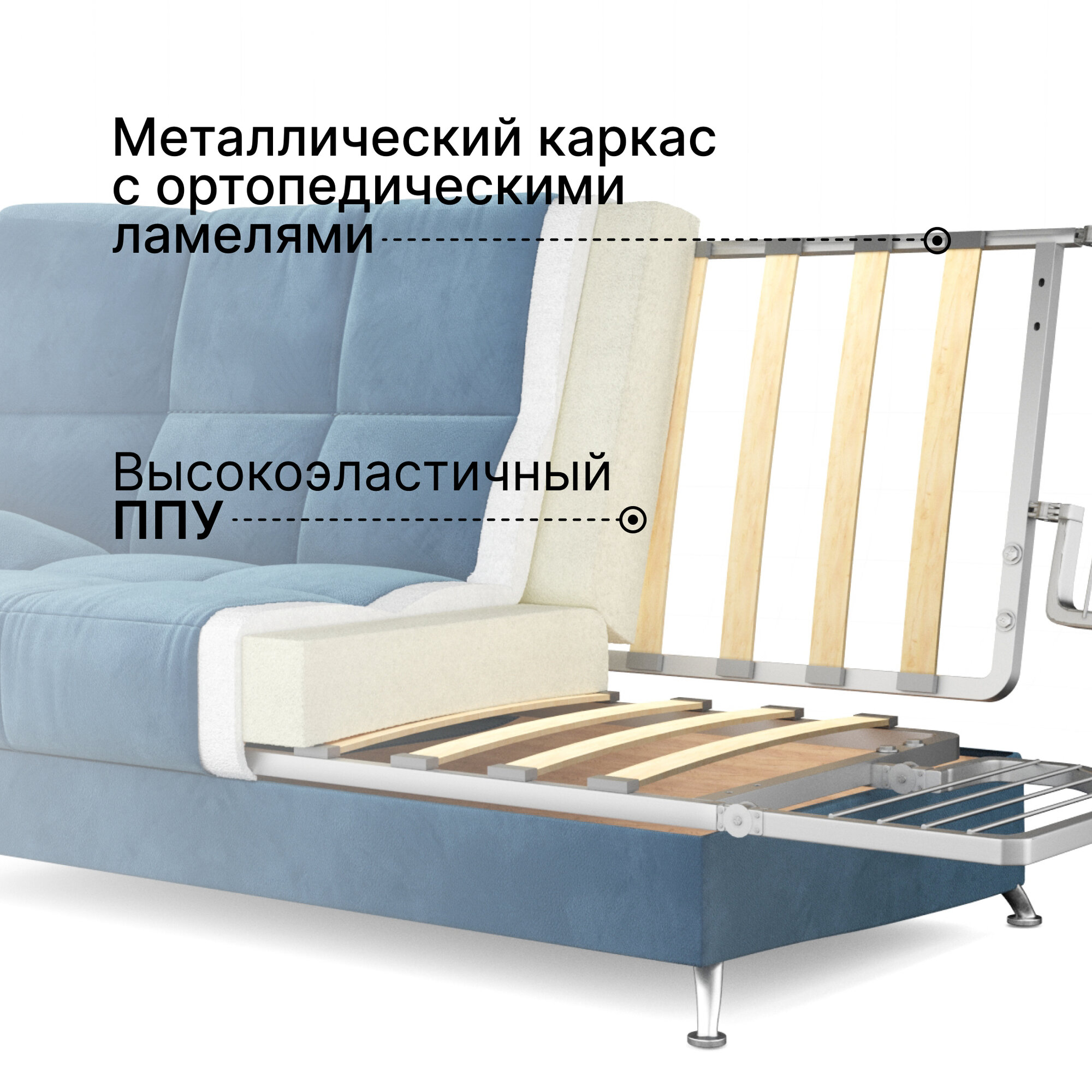 Диван-кровать раскладной Прямой, Клик-кляк, Беспружинный, 132х200 спальное место, Палермо, велюр синий интересное: