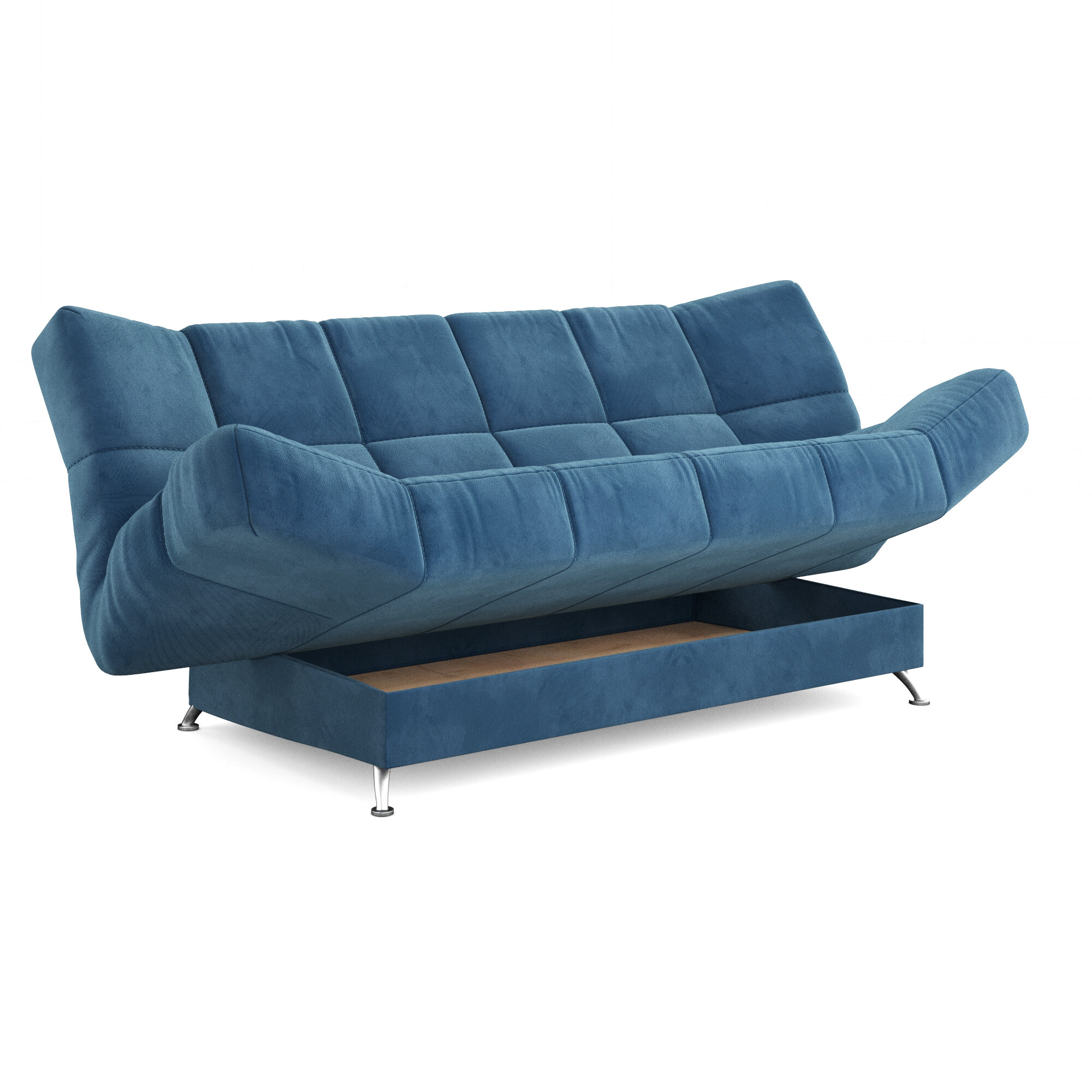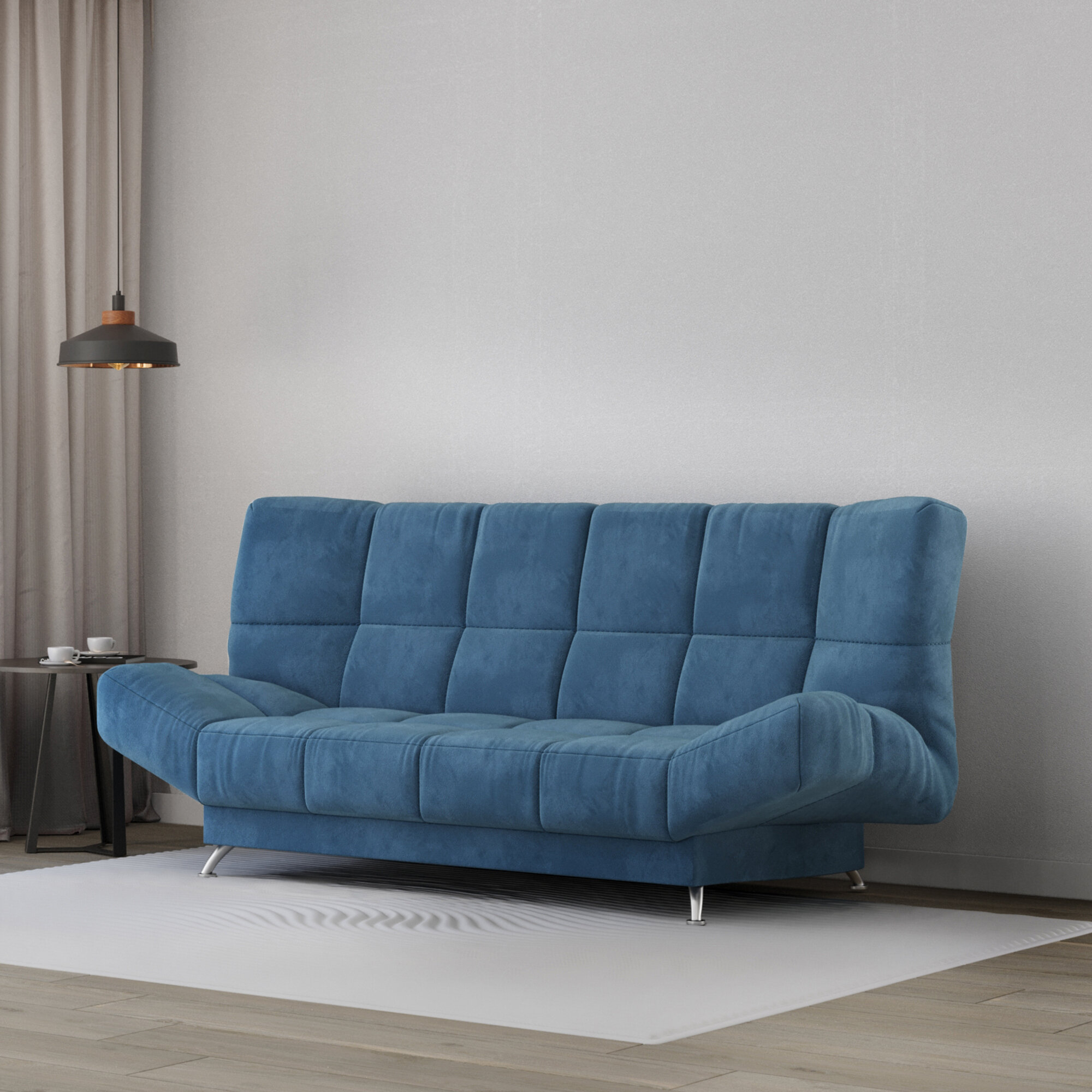 Купить Диван-кровать раскладной Прямой, Клик-кляк, Беспружинный, 132х200 спальное место, Палермо, велюр синий