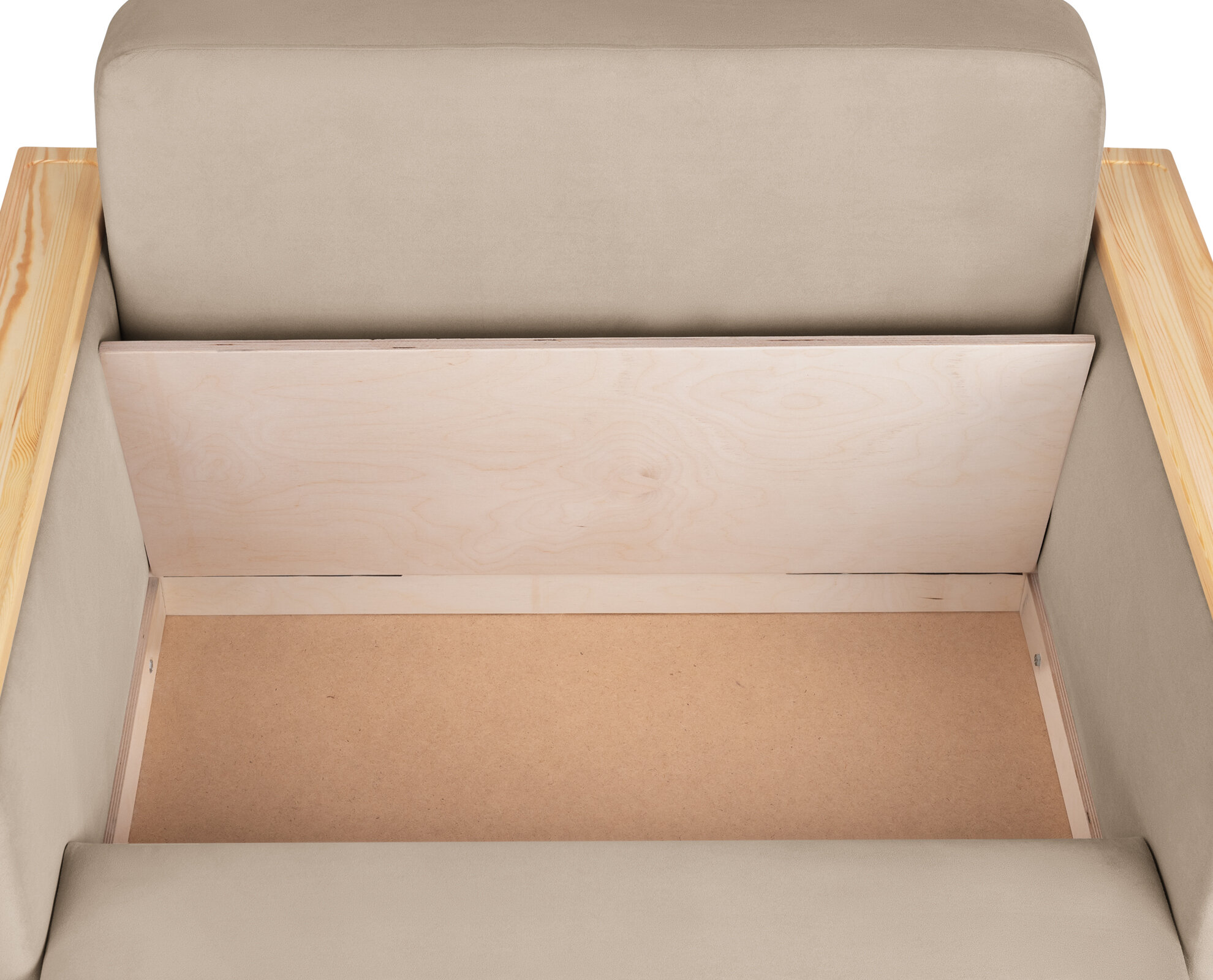 Диван-кровать Tesla на пружинном блоке, прямой, 127*80*81 см, спальное место 100*194 см, велюр бежевый