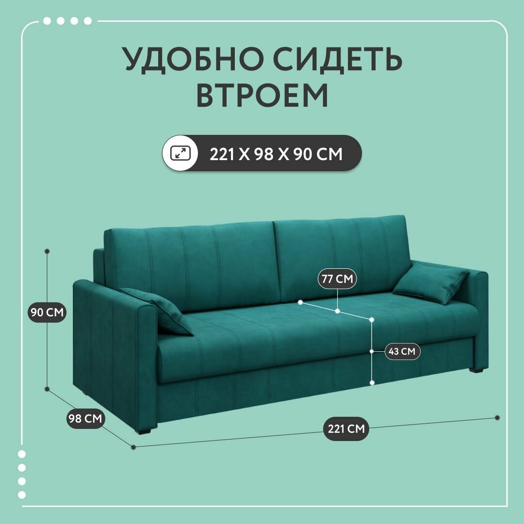 Диван-кровать раскладной прямой Dee One Римини, еврокнижка, велюр, 221х98х90, изумрудный