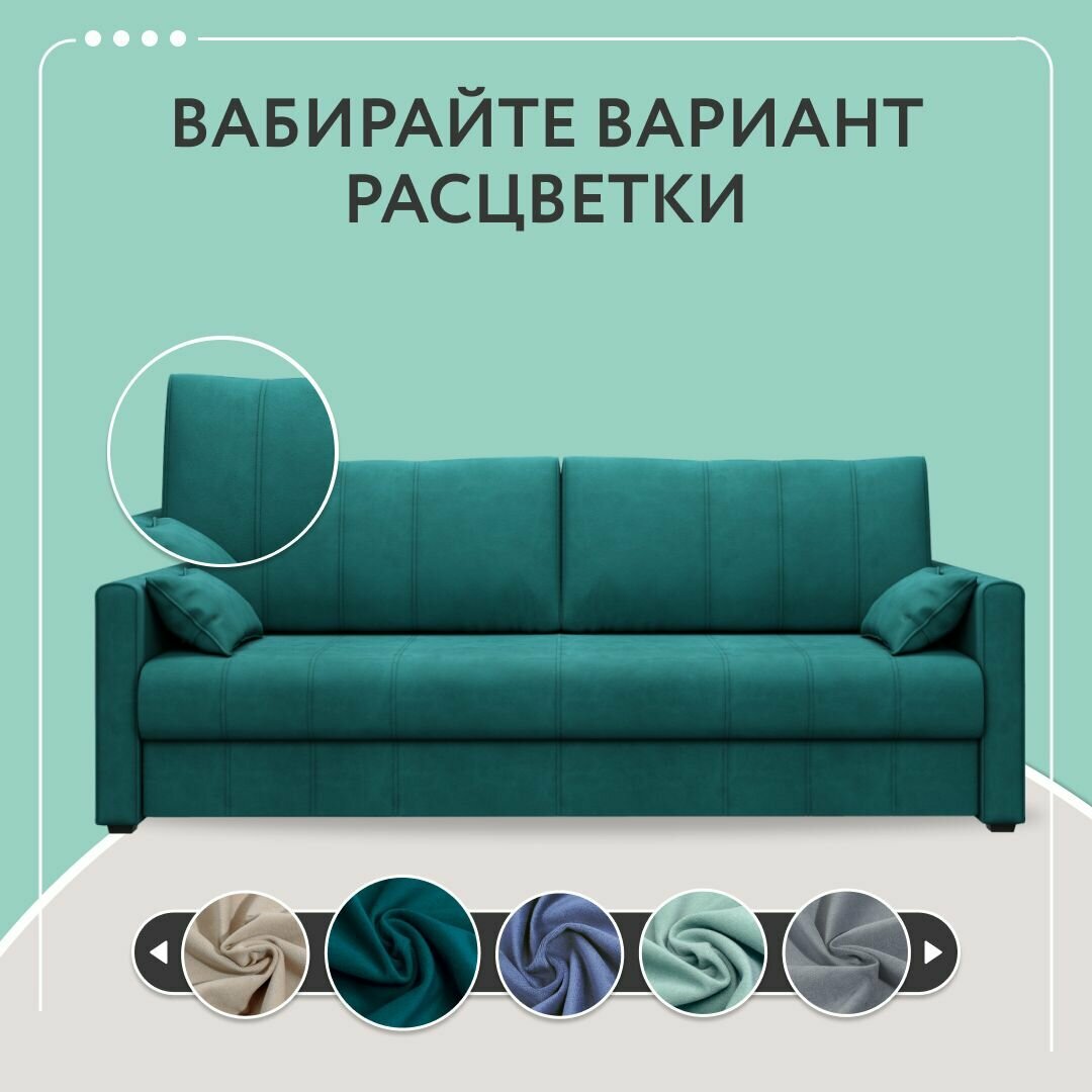 Диван-кровать раскладной прямой Римини, еврокнижка, велюр, мятный, 221х98х90