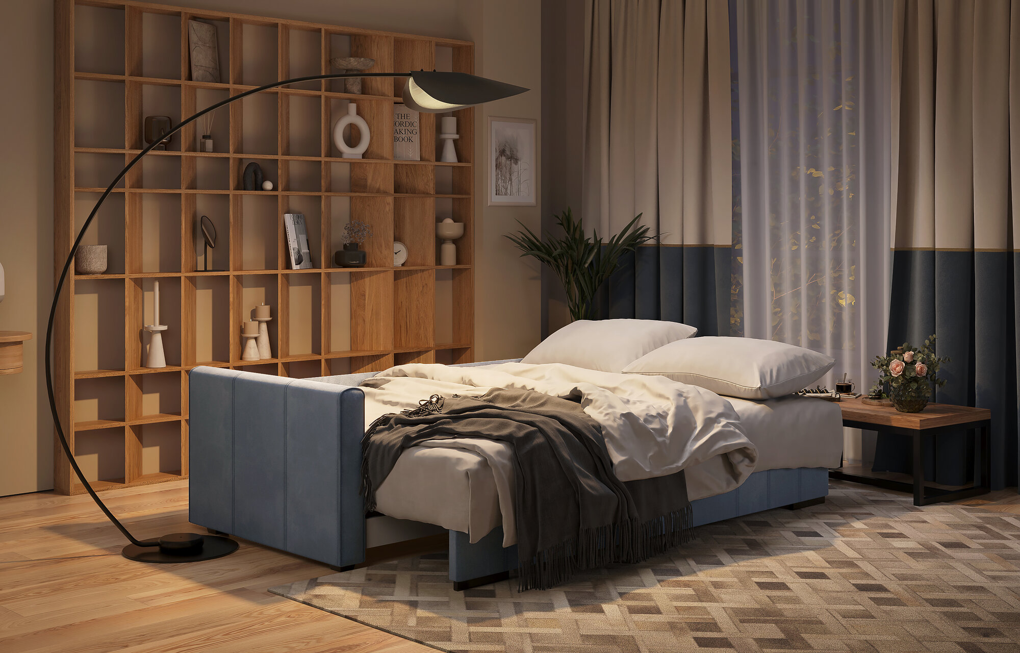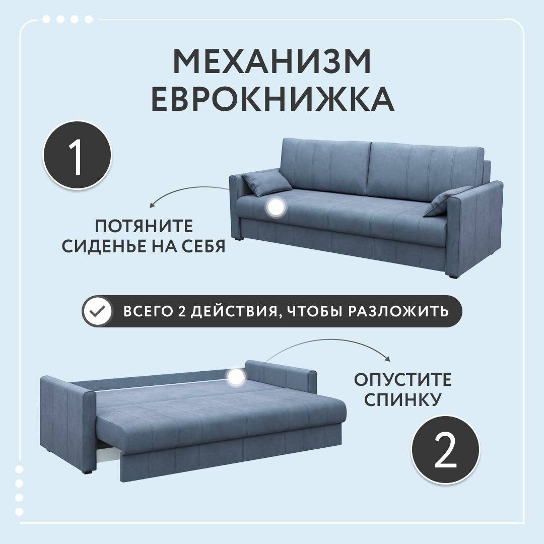 СохранитьДиван-кровать раскладной прямой Римини, еврокнижка, велюр, синий, 221х98х90 интересное: