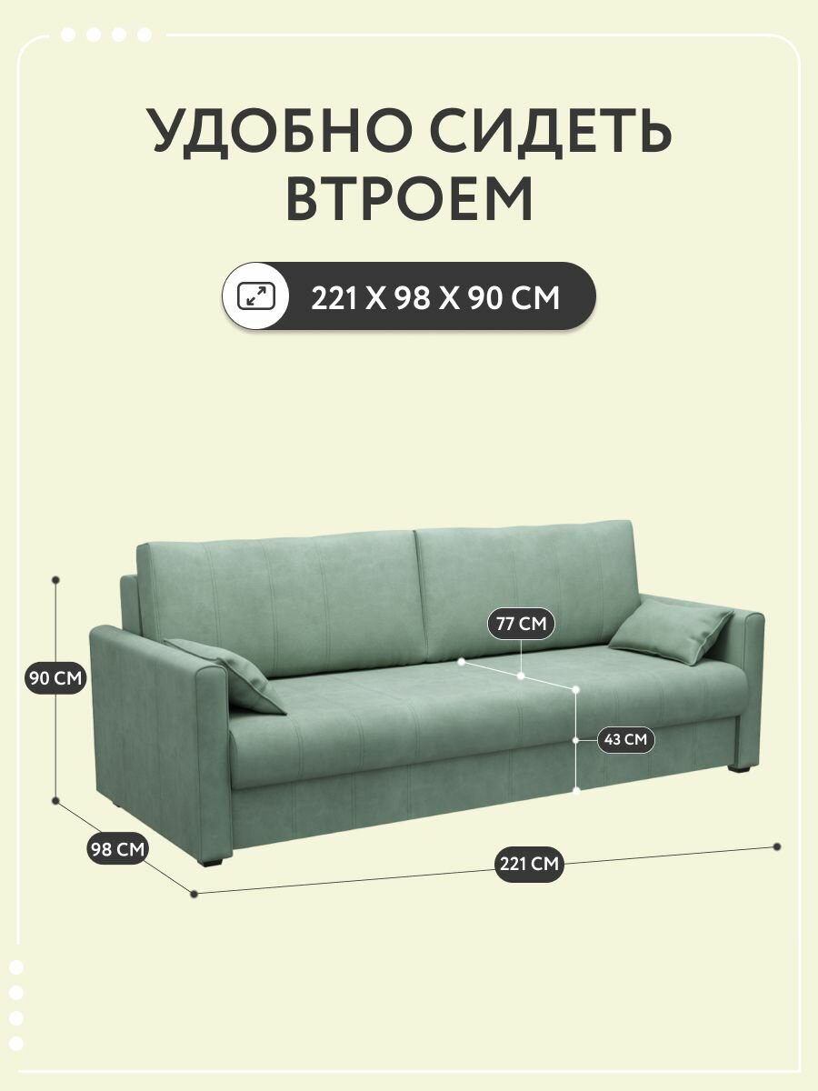 СохранитьДиван-кровать раскладной прямой Римини, еврокнижка, велюр, мятный, 221х98х90 интересное: