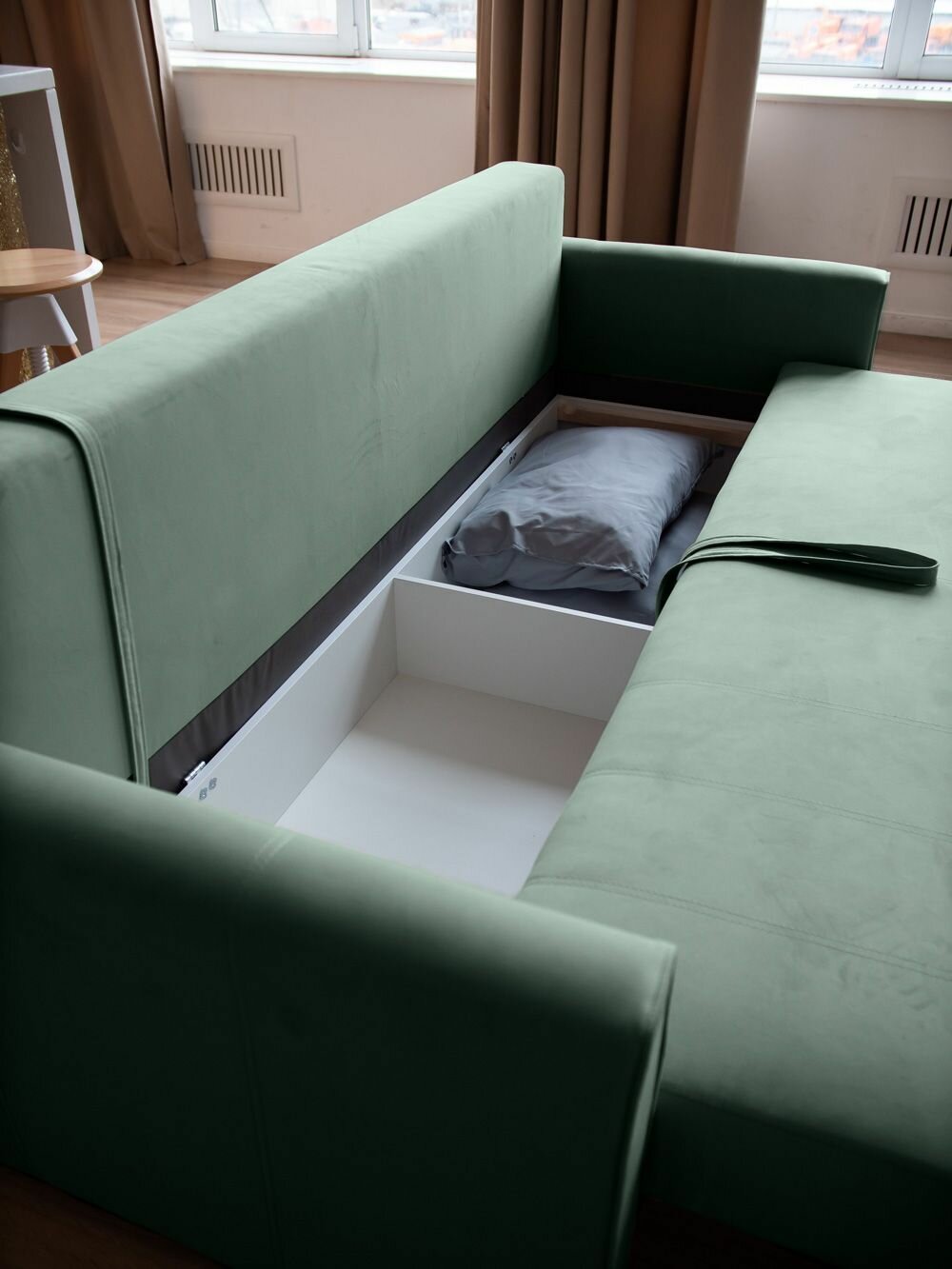 Купить Диван-кровать раскладной прямой Римини, еврокнижка, велюр, мятный, 221х98х90