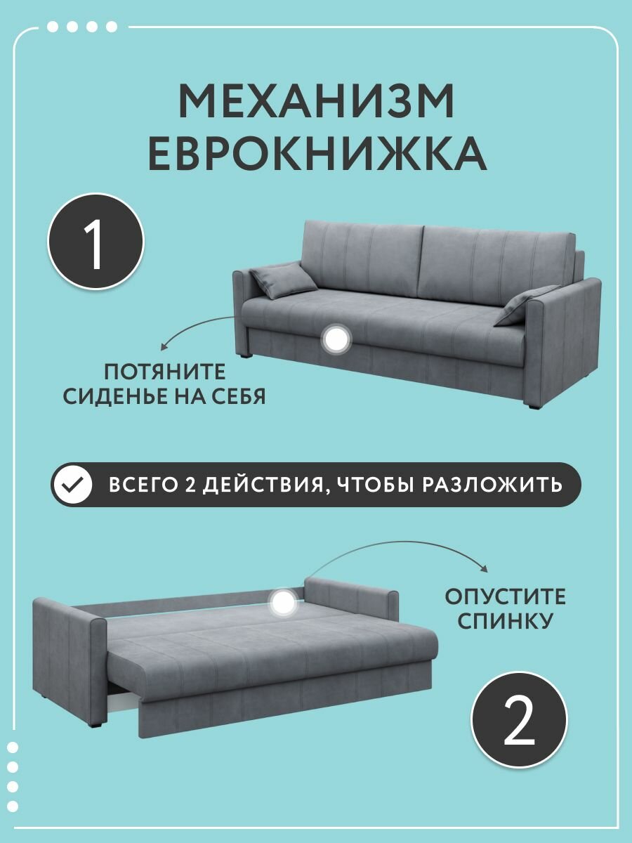 СохранитьДиван-кровать раскладной прямой Римини, еврокнижка, велюр, серый, 221х98х90 интересное: