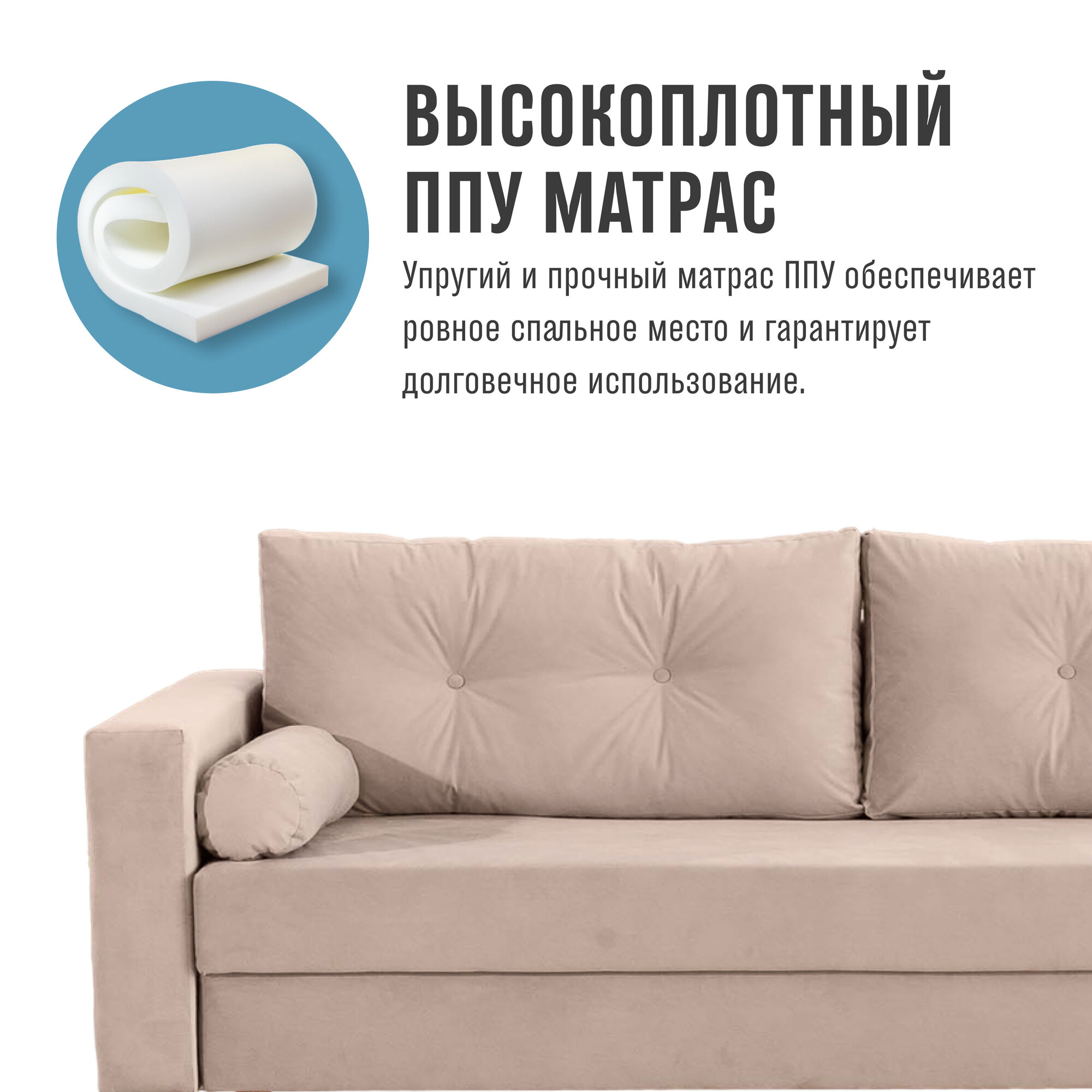 Раскладной диван кровать Пекин прямой модульный, механизм еврокнижка, 217х85х84 см, бежевый, диванчик на ножках с ящиком для хранения