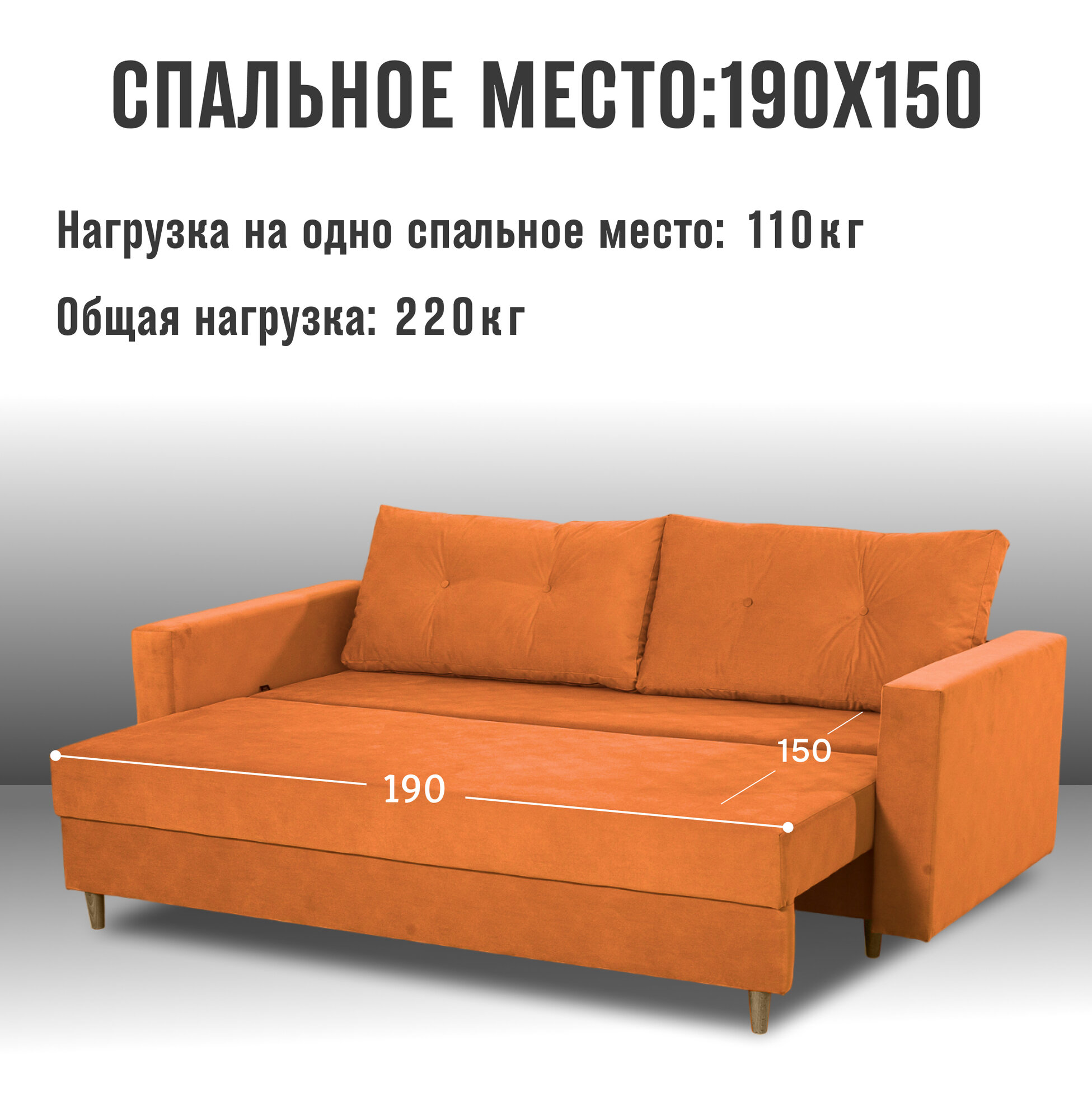 Купить Раскладной диван кровать Киото прямой, механизм еврокнижка, 220х96х85 см, оранжевый