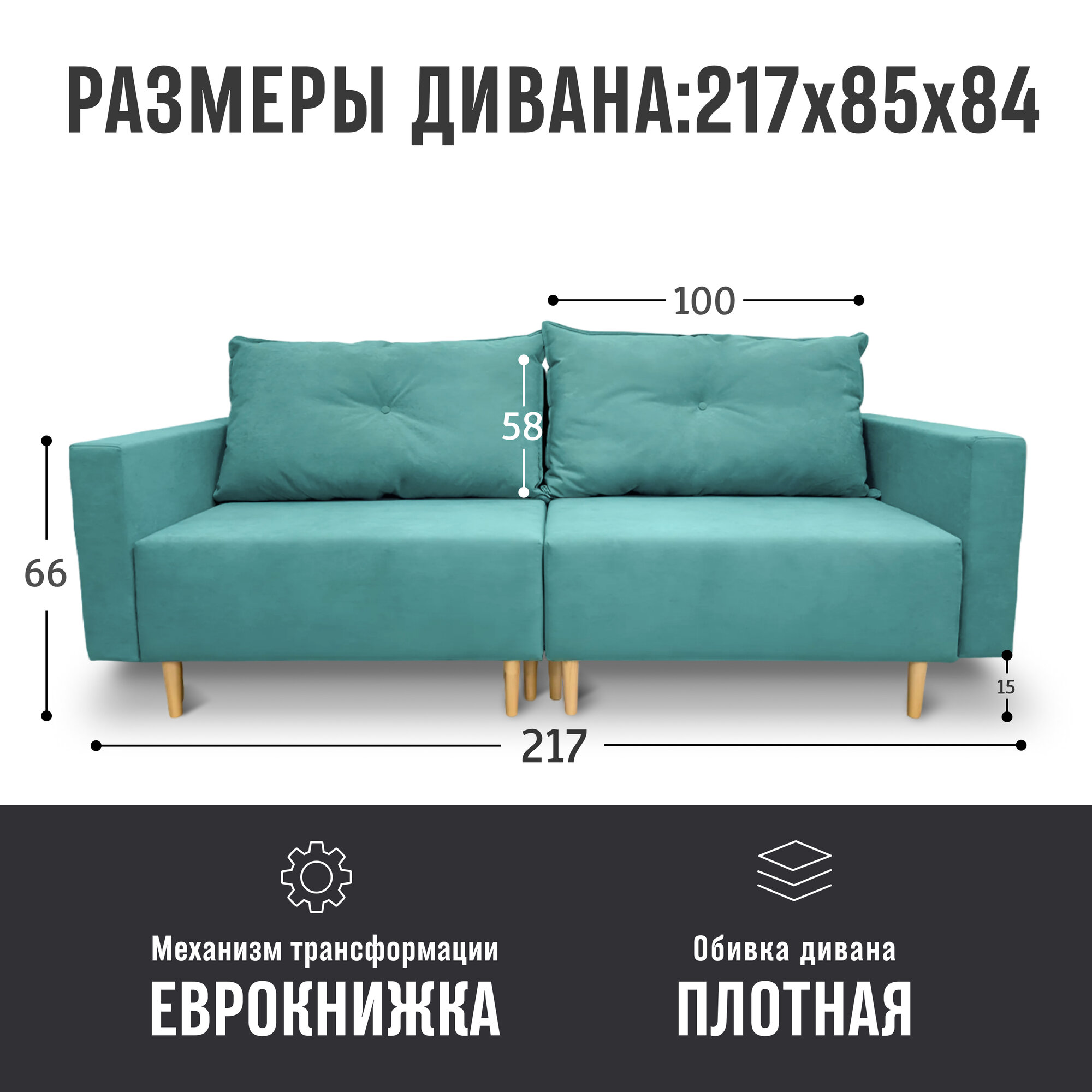 Раскладной диван кровать Пекин прямой модульный, механизм еврокнижка, 217х85х84 см, бирюзовый, диванчик на ножках с ящиком для хранения