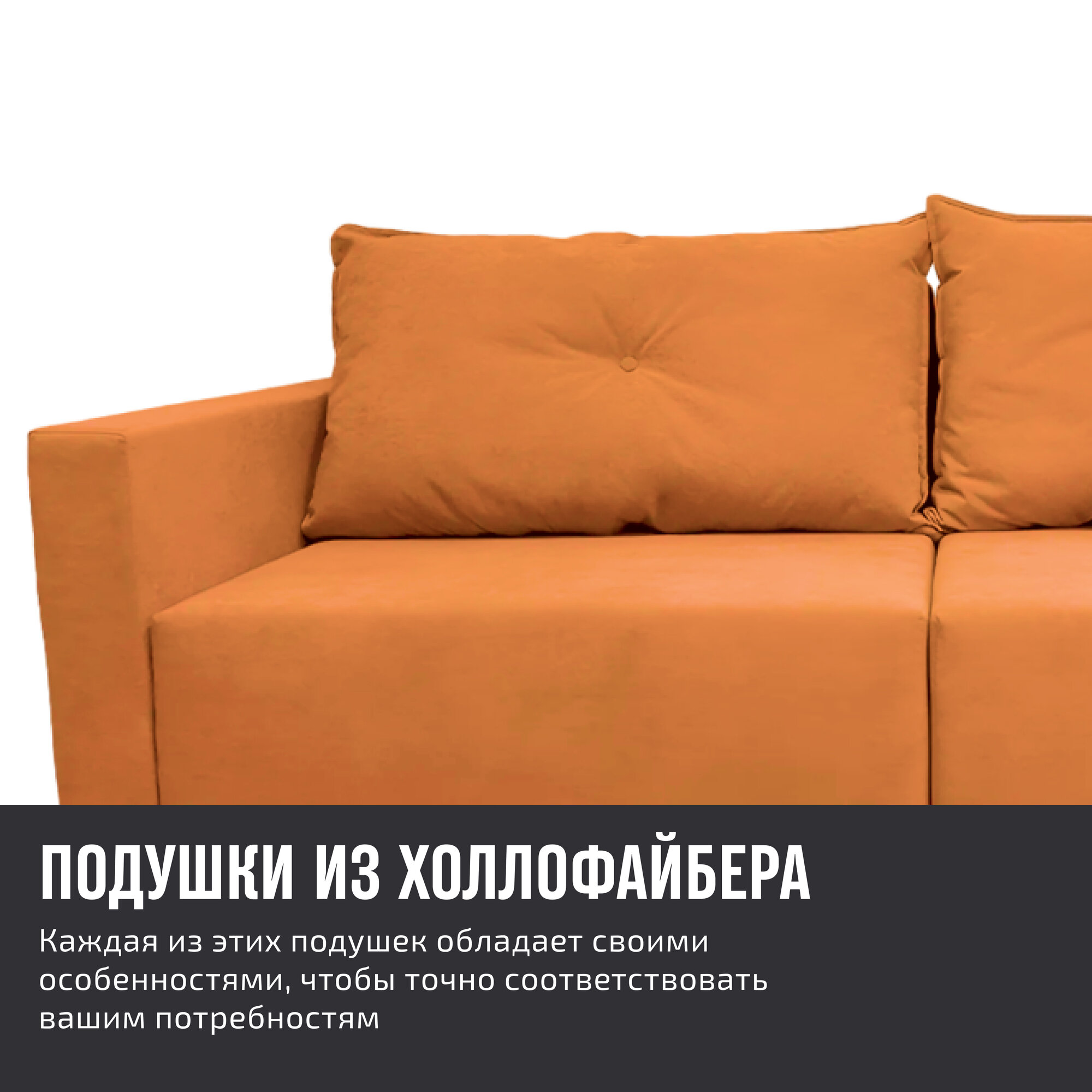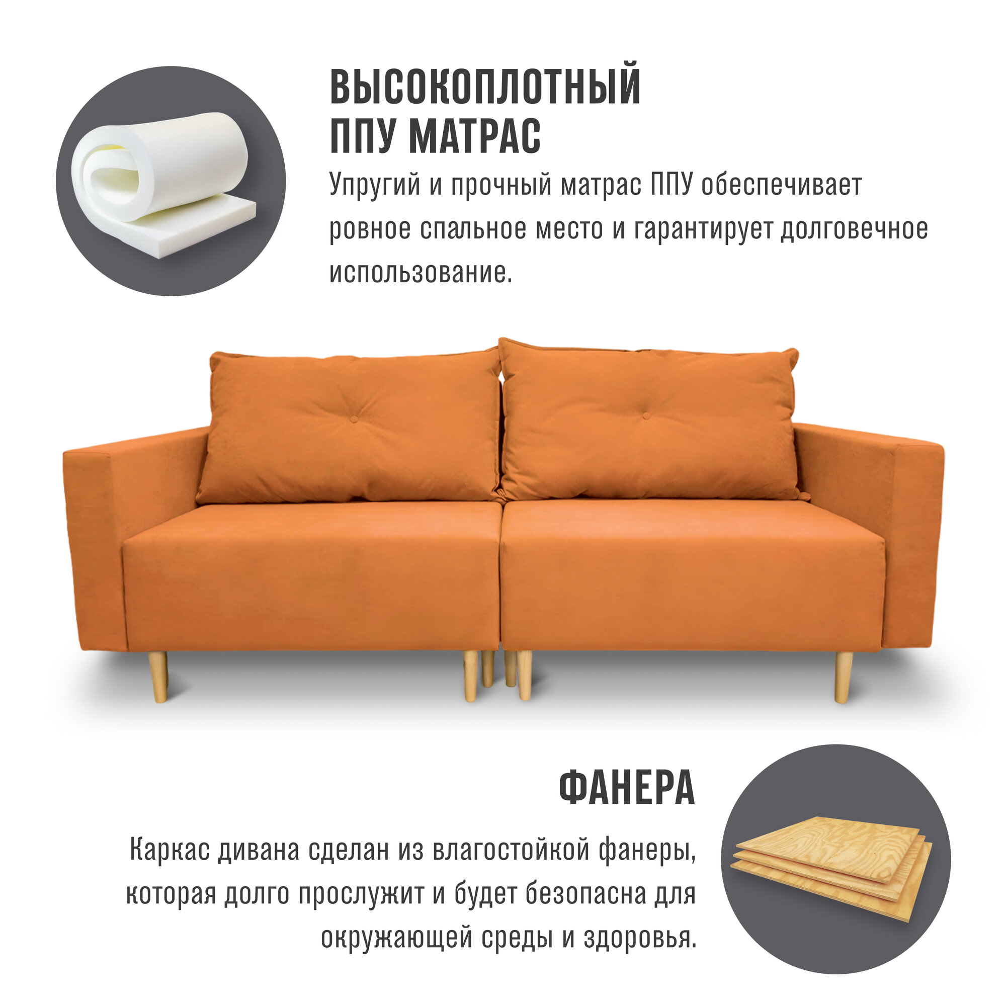 Раскладной диван кровать Пекин прямой модульный, механизм еврокнижка, 217х85х84 см, оранжевый, диванчик на ножках с ящиком для хранения