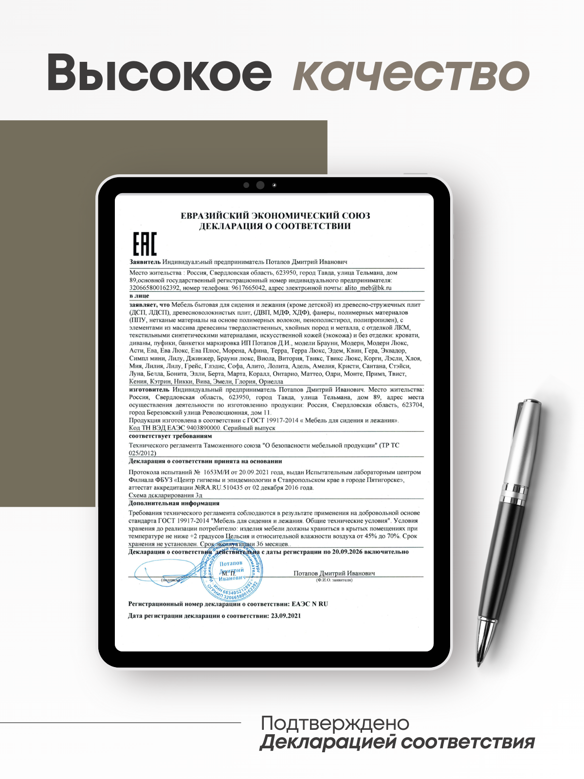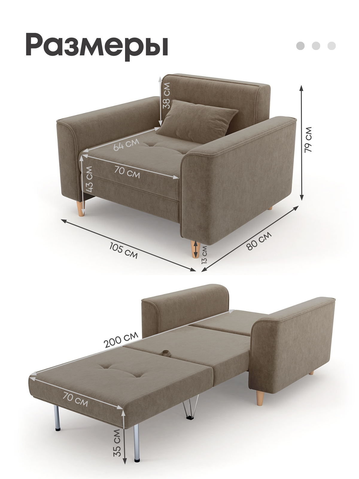 | Комплектация | Кресло-кровать на высоких ножках (13 см), декоративная подушка в подарок. |