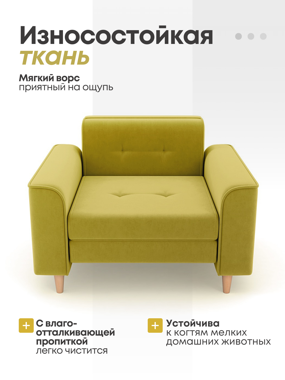 | Особенности | без колесиков, с ножками, с подлокотниками, с подушкой |