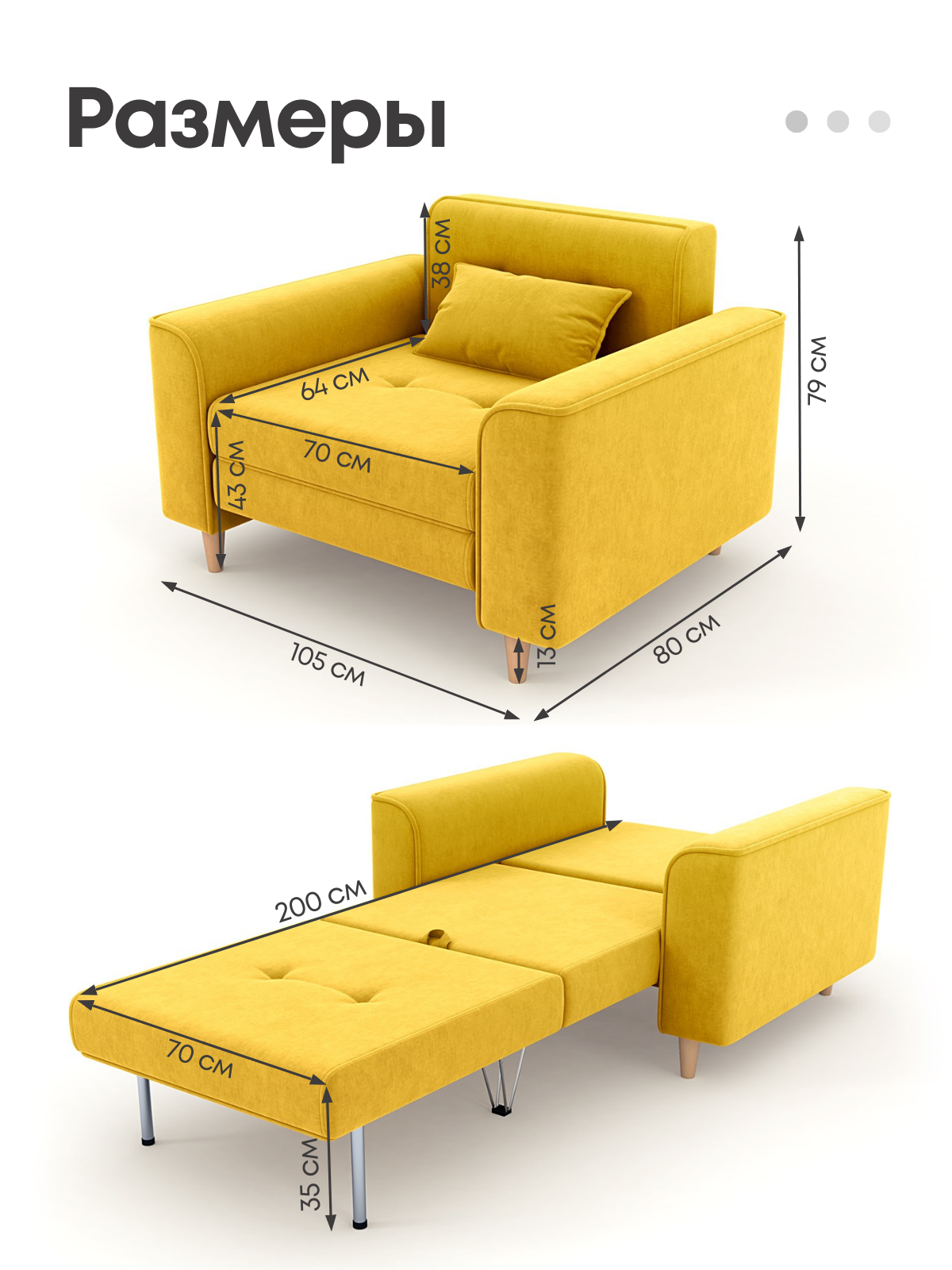 | Комплектация | Кресло-кровать на высоких ножках (13 см), декоративная подушка в подарок. |