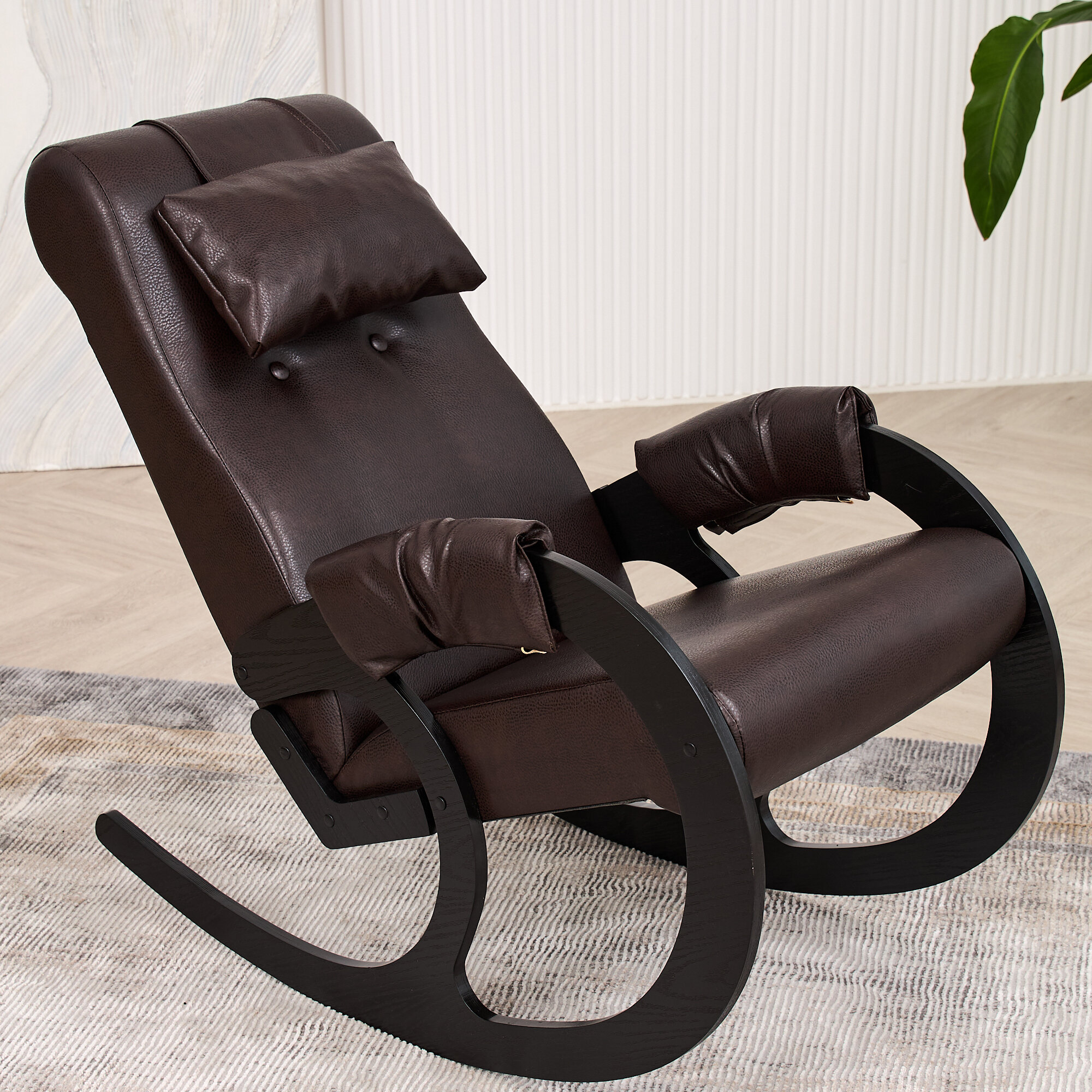 Кресло-качалка AVK Блюз, экокожа, с банкеткой, черные/венге