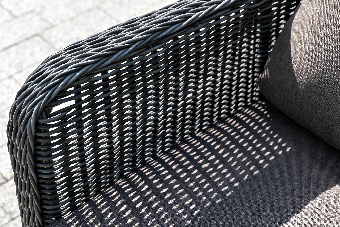 Кресло 4sis Канны из роупа (каркас алюминий серый муар, роуп серый круглый, ткань серая)