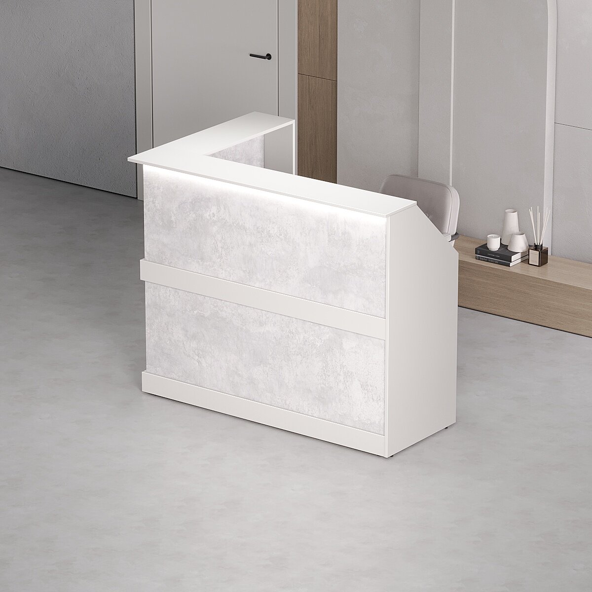 Стойка Ресепшн Эконом Угловая / Белый + цемент светлый / 1500х1200х600 С Подсветкой