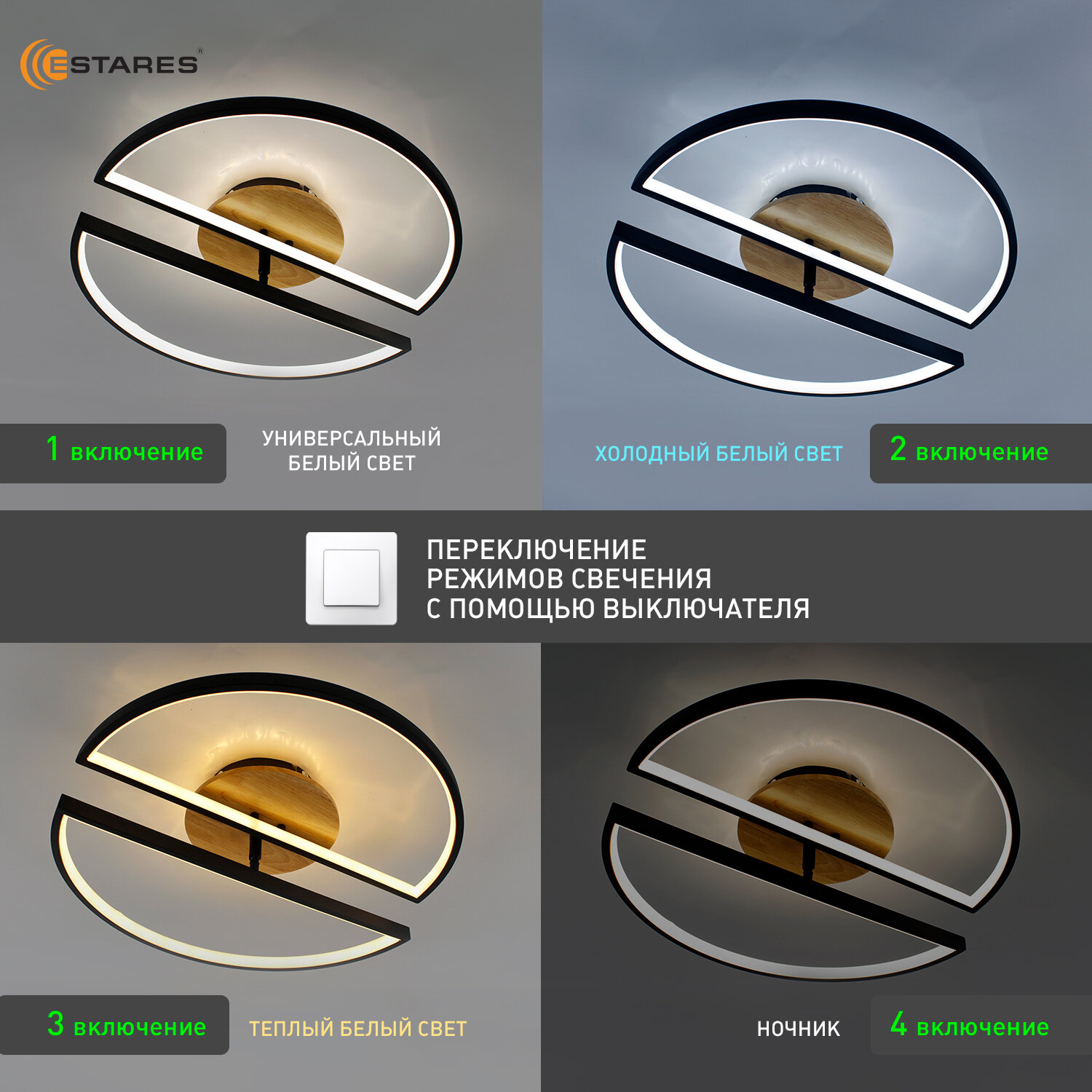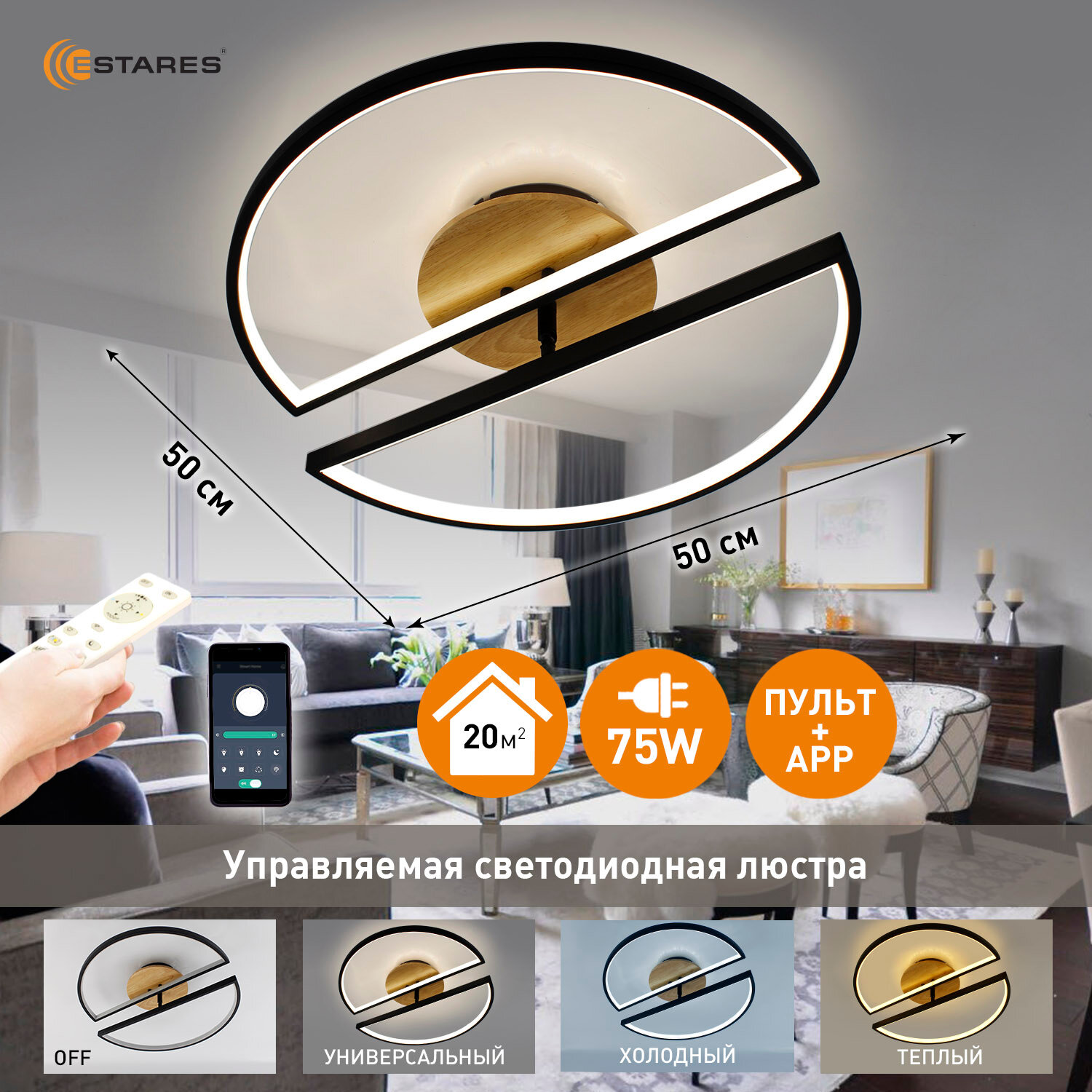 Estares светильник-люстра светодиодная управл. WOODY 3R 75W(7500lm) 2K-4K-6K 500x135 пульт ДУ черн./дерево IP20 интересное: