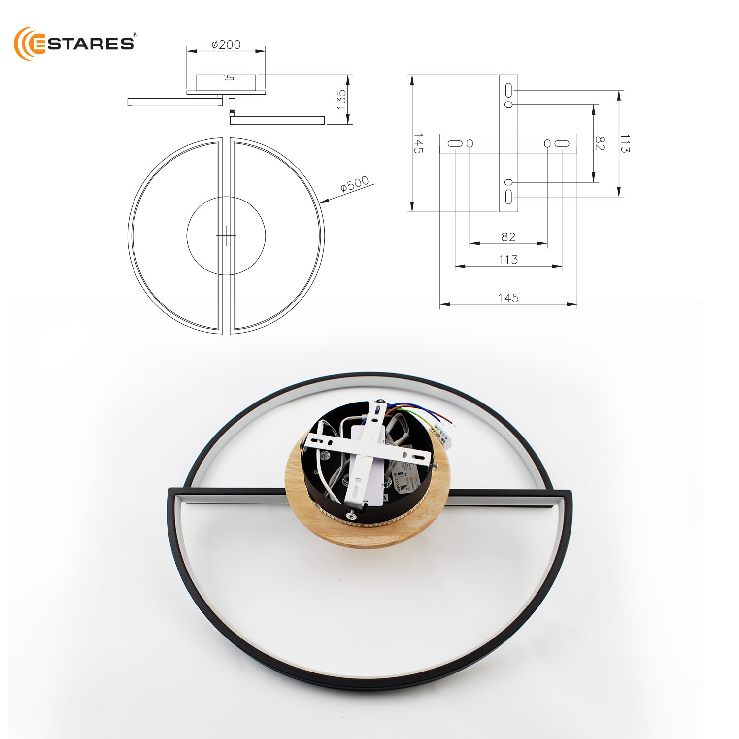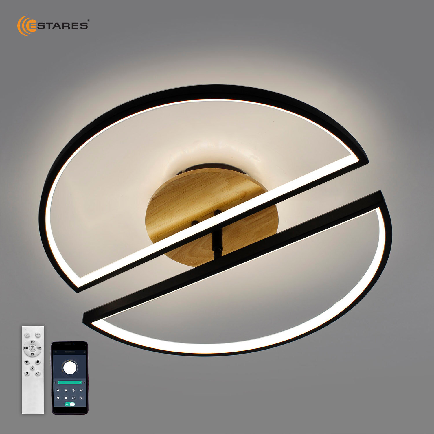 Купить Estares светильник-люстра светодиодная управл. WOODY 3R 75W(7500lm) 2K-4K-6K 500x135 пульт ДУ черн./дерево IP20