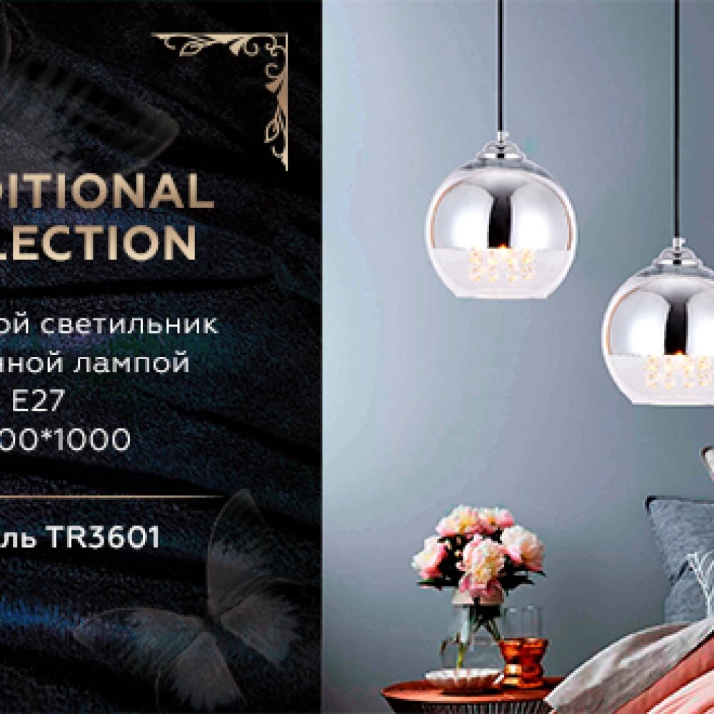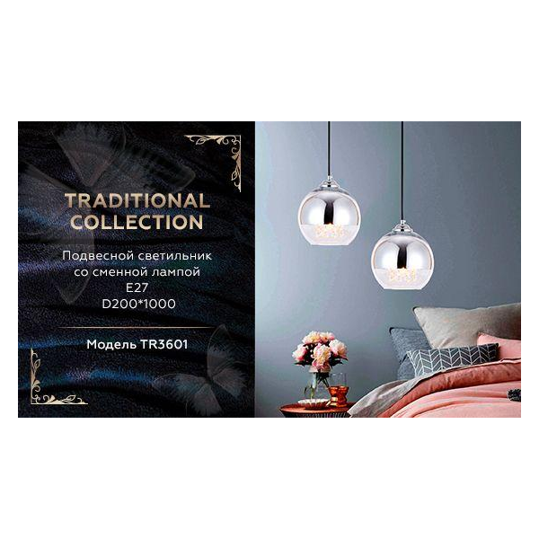 СохранитьПодвесной светильник со сменной лампой TR3601 CH/CL хром/прозрачный E27 max 40W D200*1000 интересное: