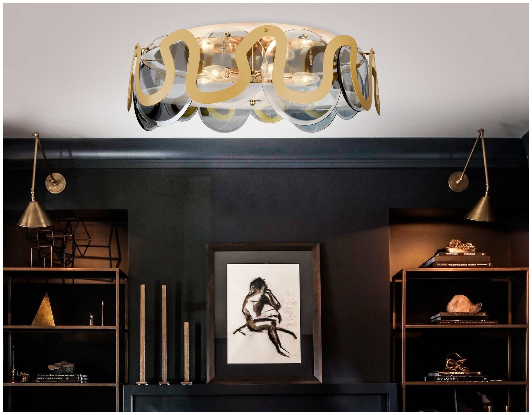 Потолочный светильник E27/5 max 40W D660*270, бронза/черный/дымчатый
