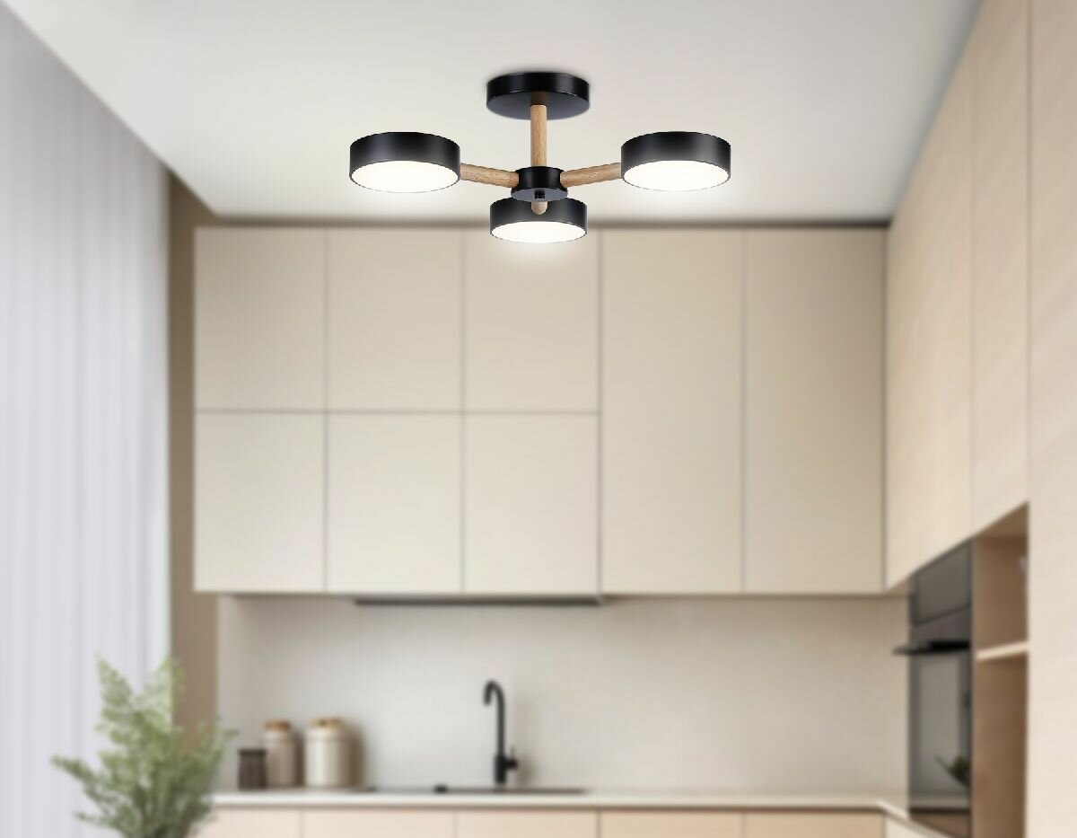 Потолочный светодиодный светильник с пультом Ambrella Light Design FZ1326BK/LWD черный/светлое дерево IP20 60W D490*80 (ПДУ ИК)