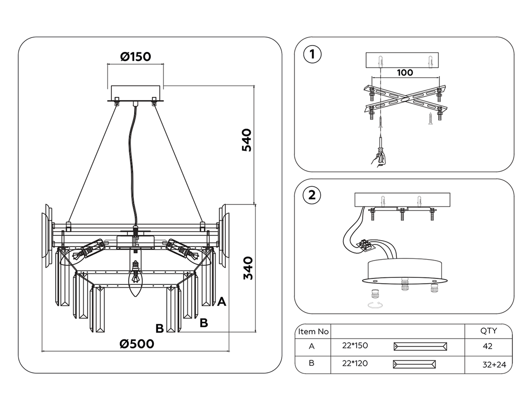 | Особенности | возможность подключения диммера / каскадная / лампы в комплекте / паук / подсветка / прозрачный плафон / регулировка по высоте / с абажуром |
