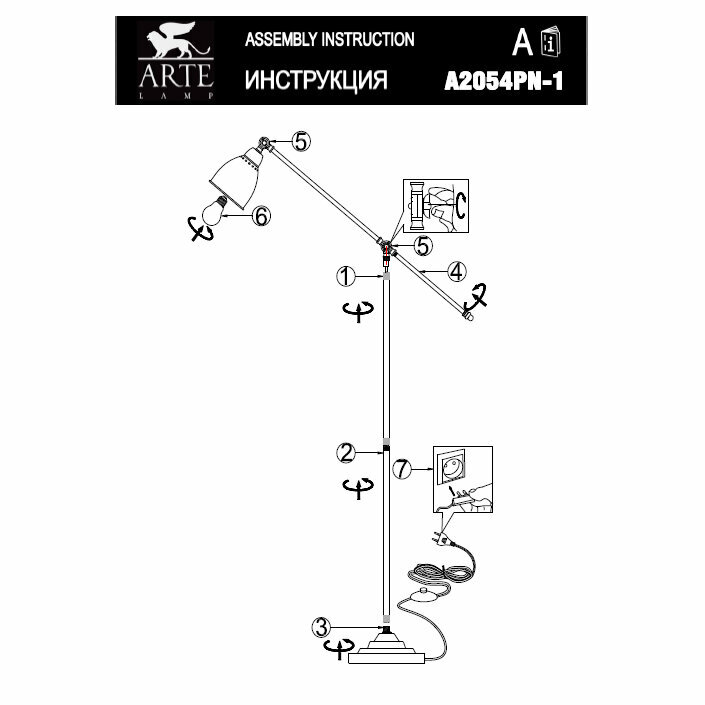 Торшер напольный Arte Lamp BRACCIO A2054PN-1BK E27 60Вт черный 144 см интересное: