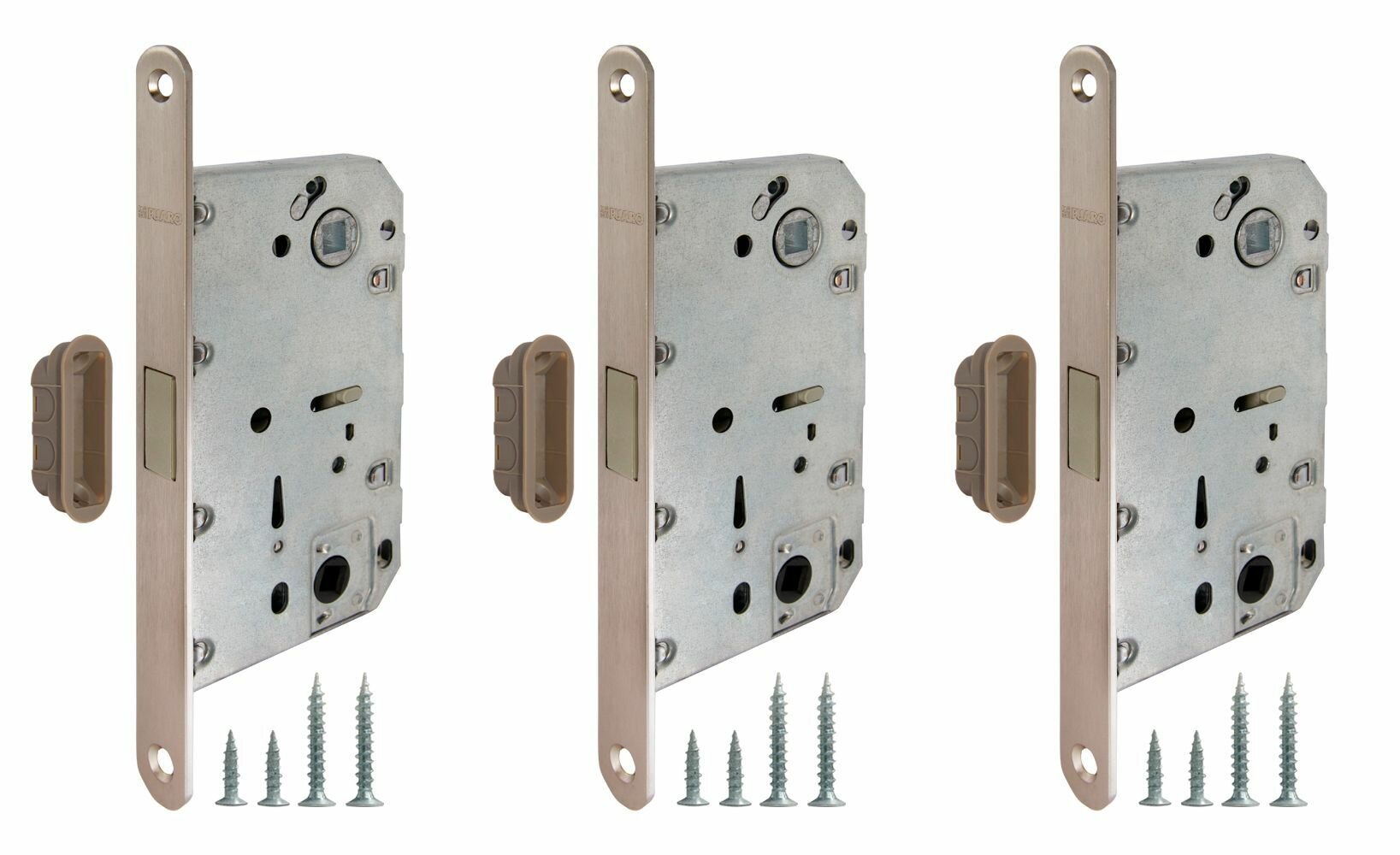 | Подробная комплектация | замок с магнитной защёлкой, ответная планка для врезки в дверной короб, крепежная фурнитура (саморезы) |
