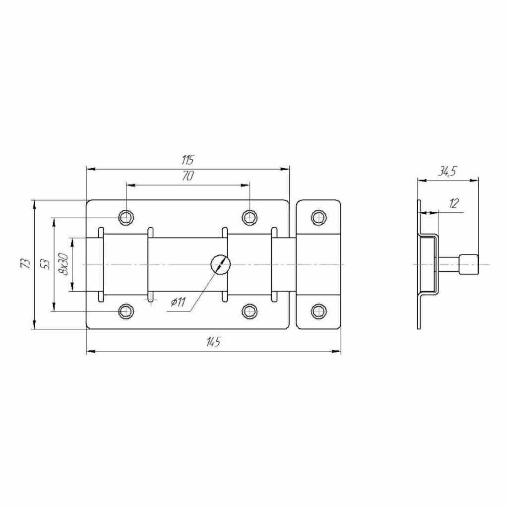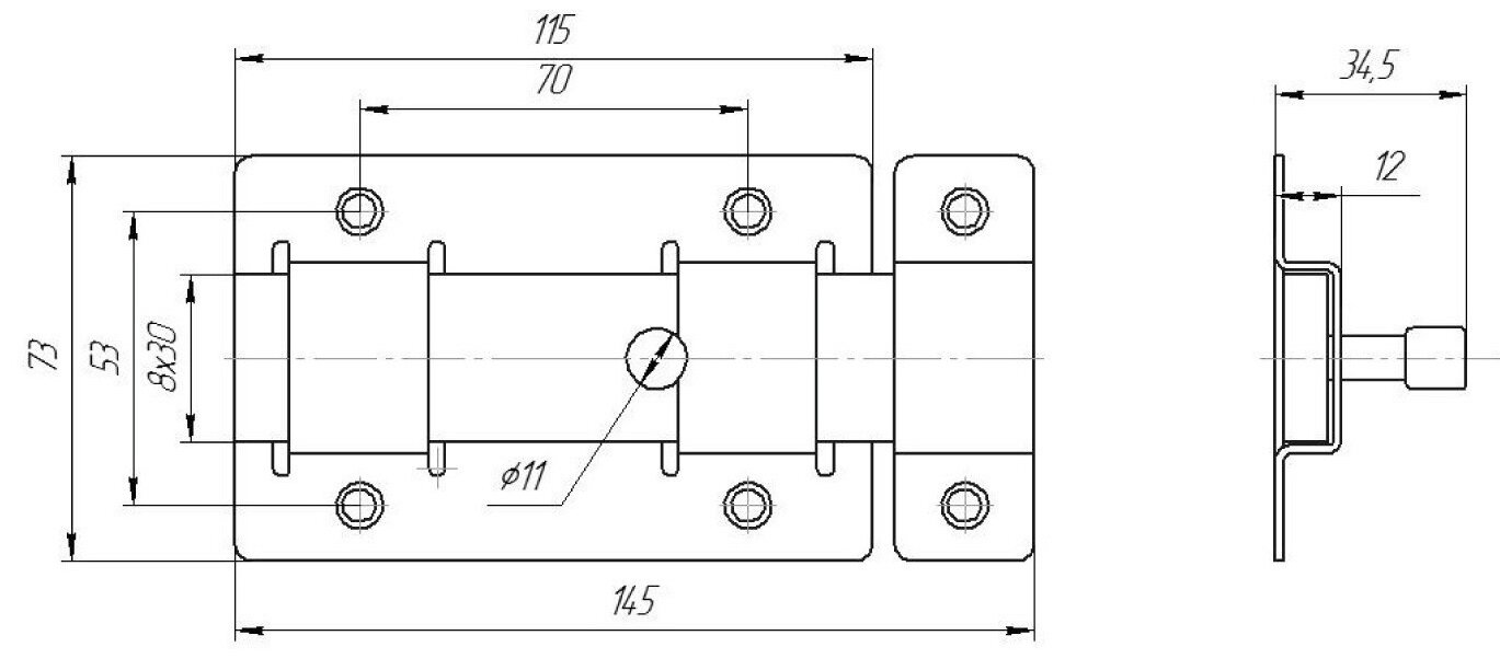 Засов Киров Секрет ЗД-02 серый металлик плоский