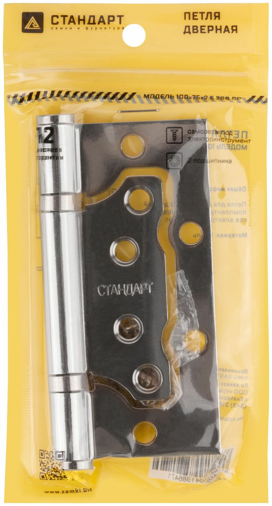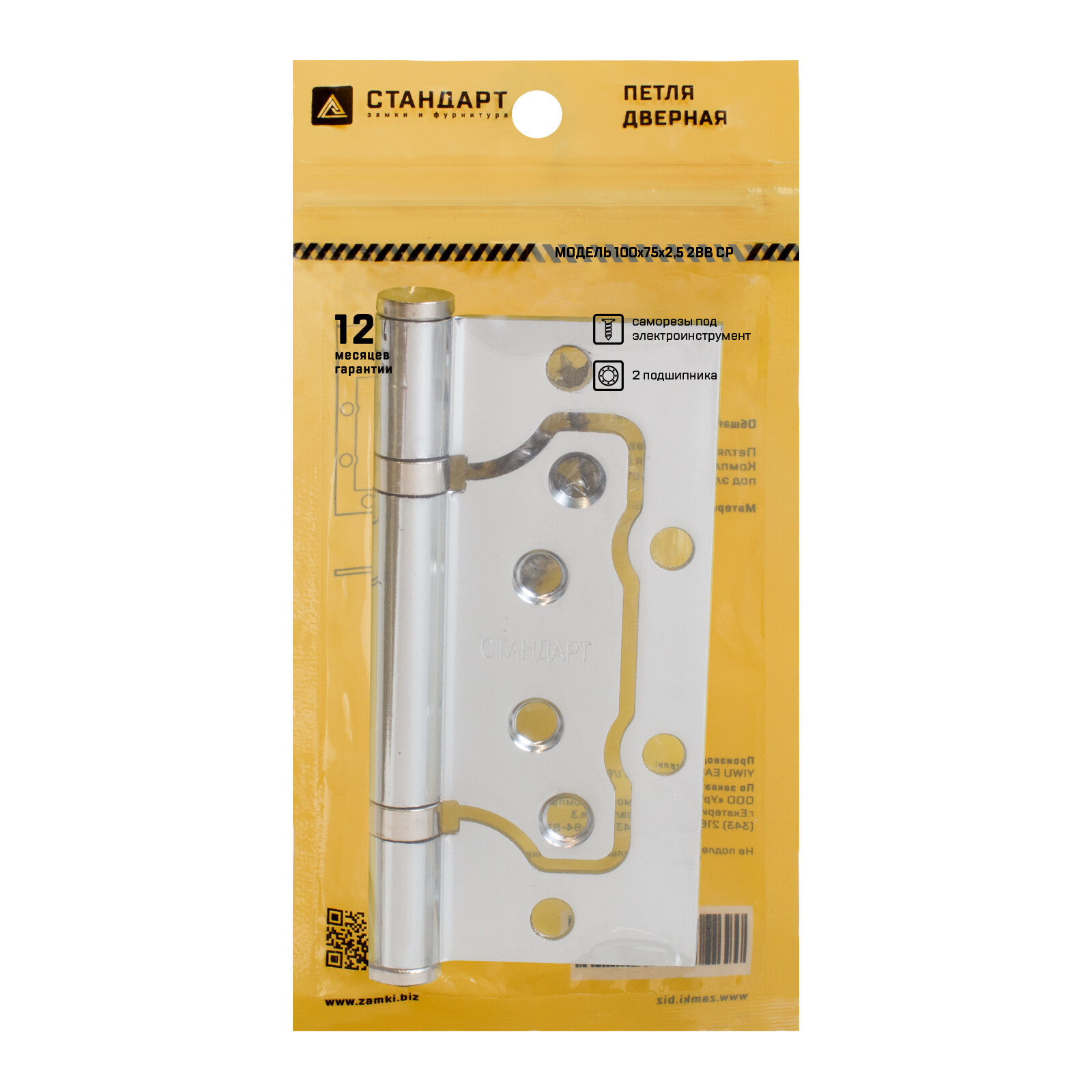 Купить Петля дверная универсальная (без врезки) "Стандарт" 100х75х2,5 мм хром (2ВВ - СР)