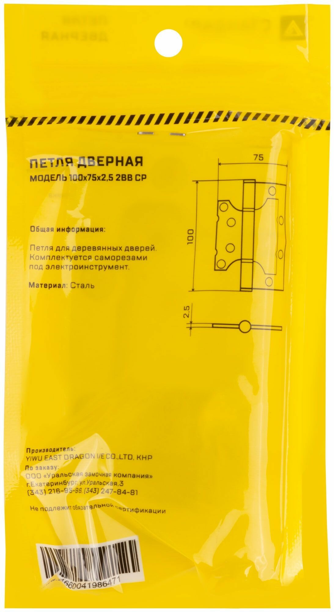 СохранитьПетля дверная универсальная (без врезки) "Стандарт" 100х75х2,5 мм хром (2ВВ - СР) интересное: