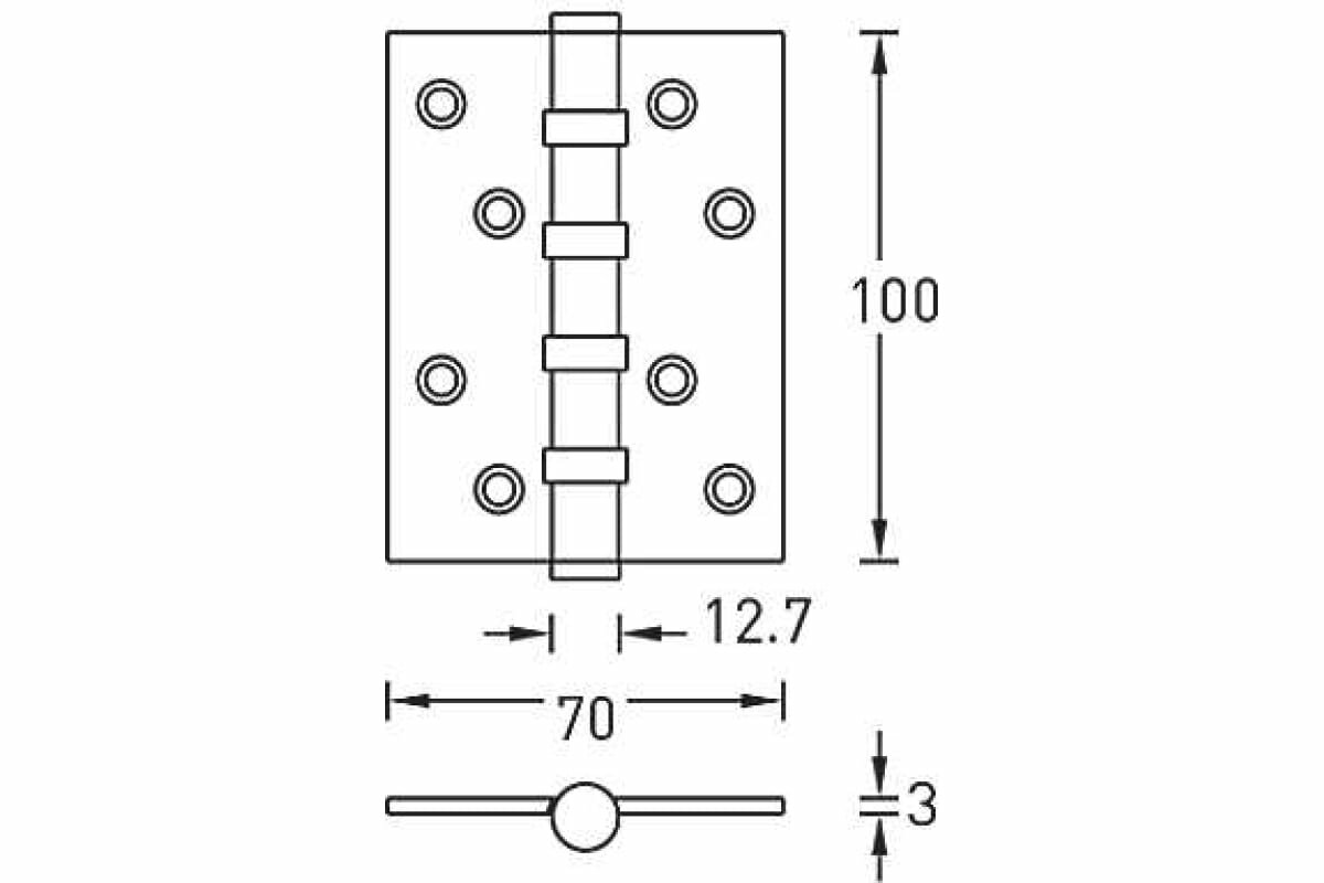 Петля дверная универсальная Archie A010-C 100X70X3-4BB-1HH, бел. никель, 4 ш/подшипника, 1шт