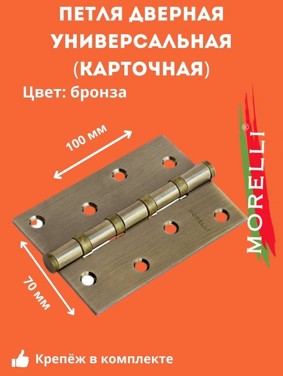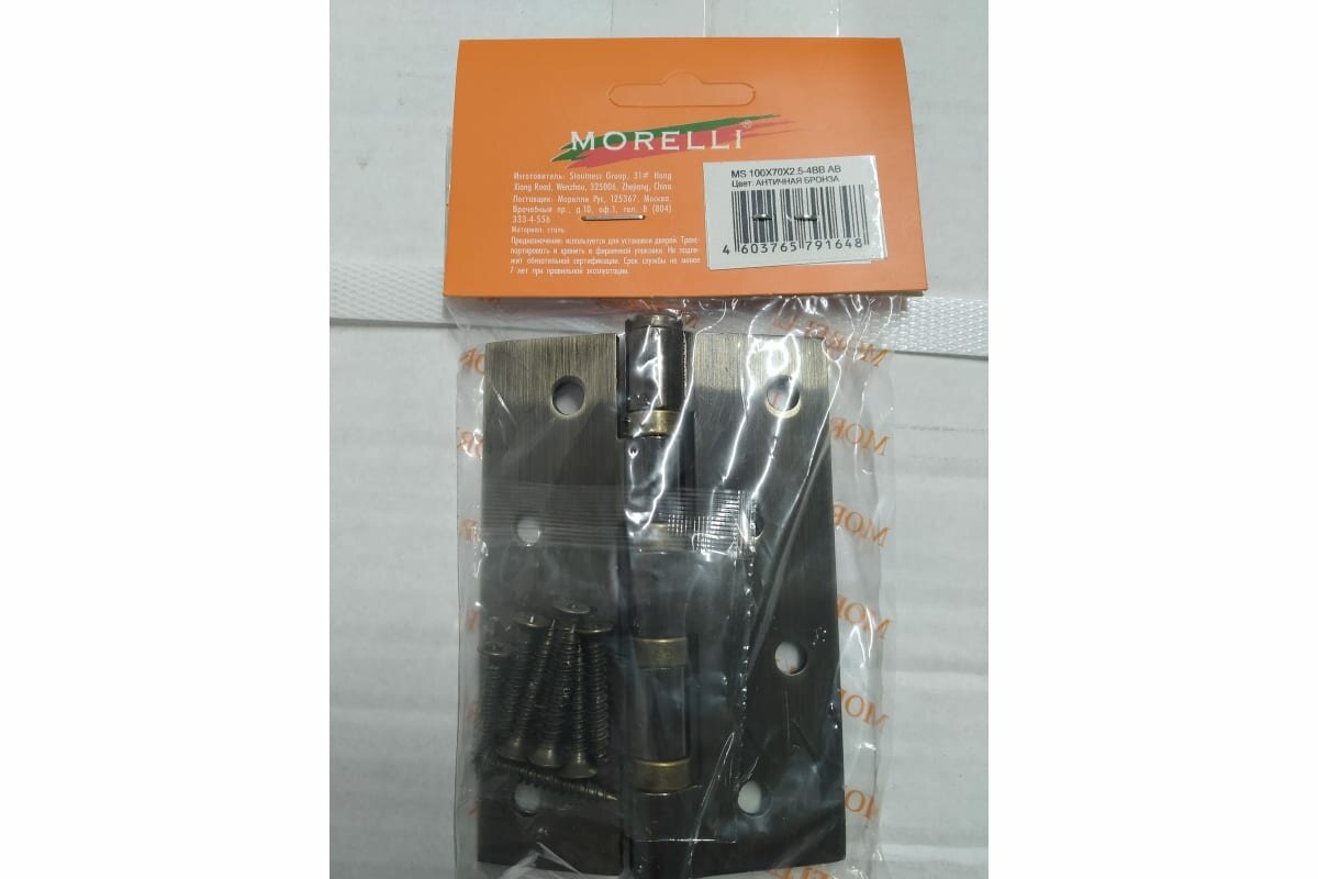Петля стальная Morelli, универсальная , без короны MS100*70*2.5-4BB AB бронза (комплект 2 шт)