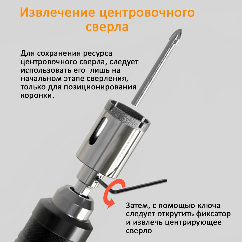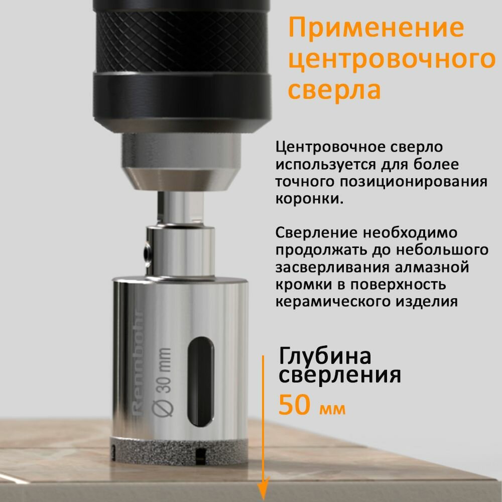 Коронка RENNBOHR с алмазным покрытием и сверлом, диаметр 30, глубина сверления до 5 см