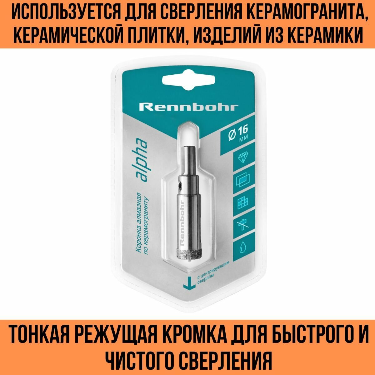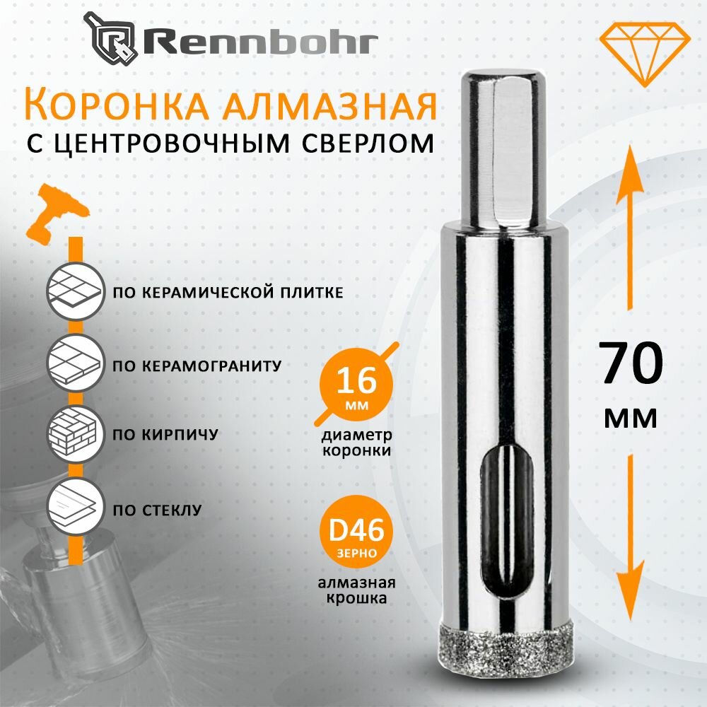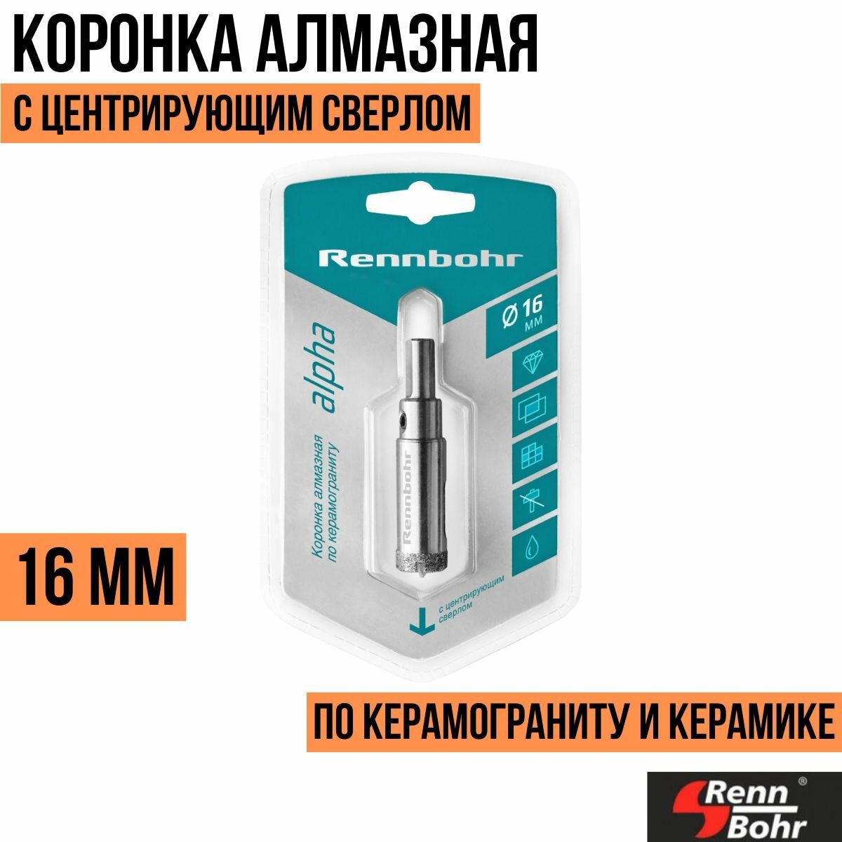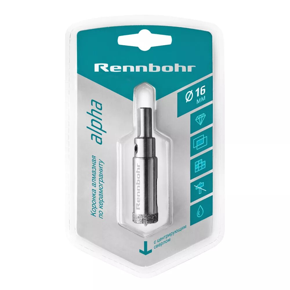 RENNBOHR Коронка алмазная с центрирующим сверлом по керамограниту и керамике 16мм " 676216