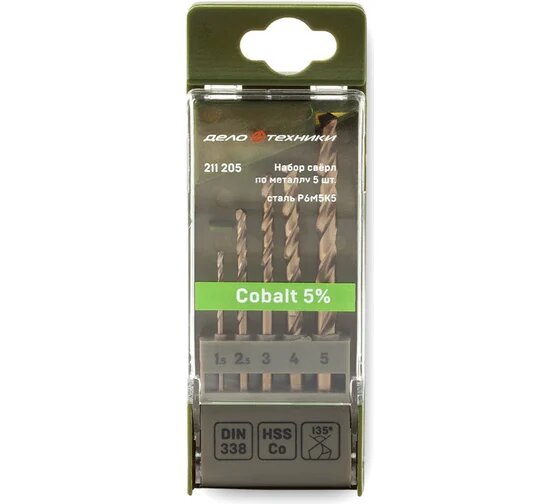 211205 Набор свёрл по металлу Cobalt 5% , 5 шт. Дело Техники интересное: