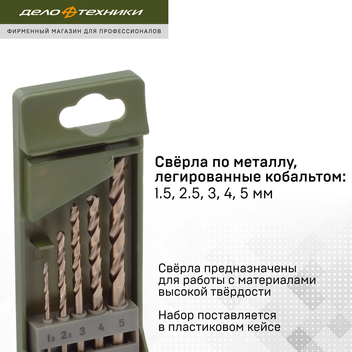 Набор свёрл Дело Техники по металлу Cobalt 5% , 5 шт., 211205