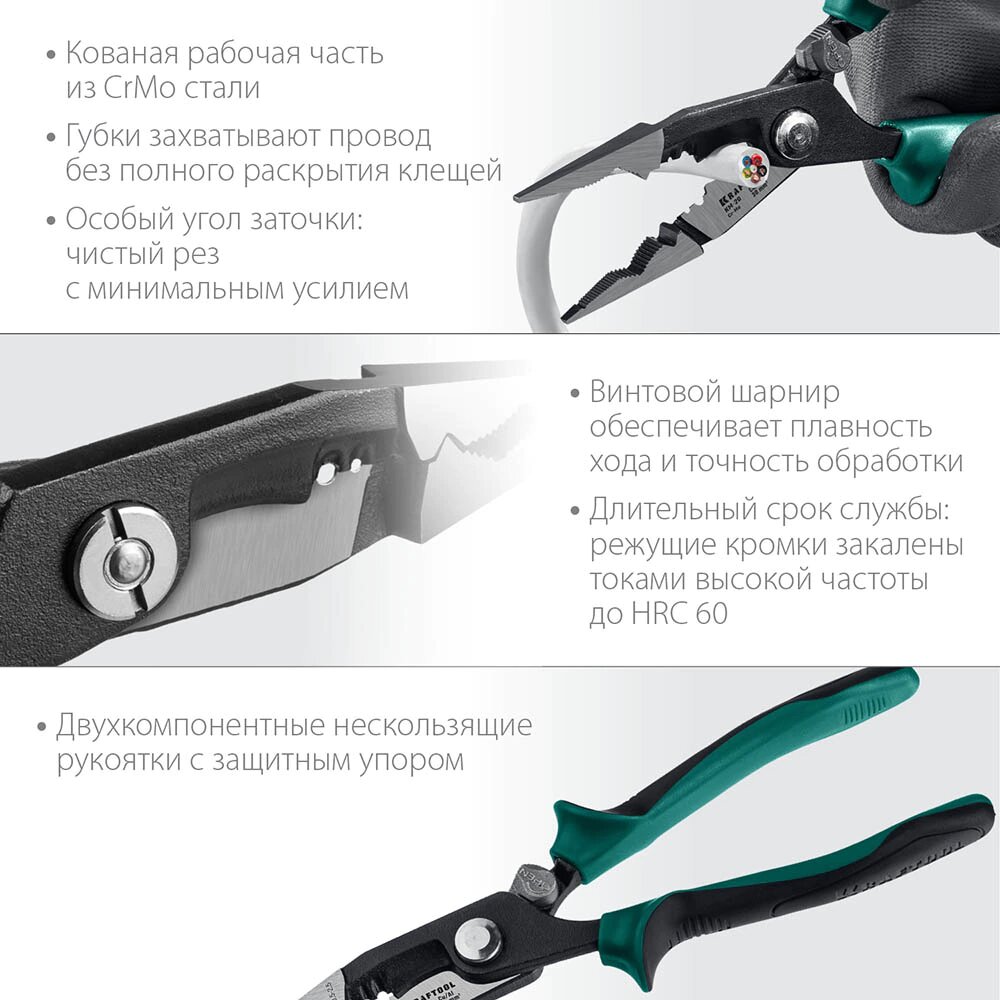 Клещи электрика многофункциональные KRAFTOOL KM-20, 200 мм