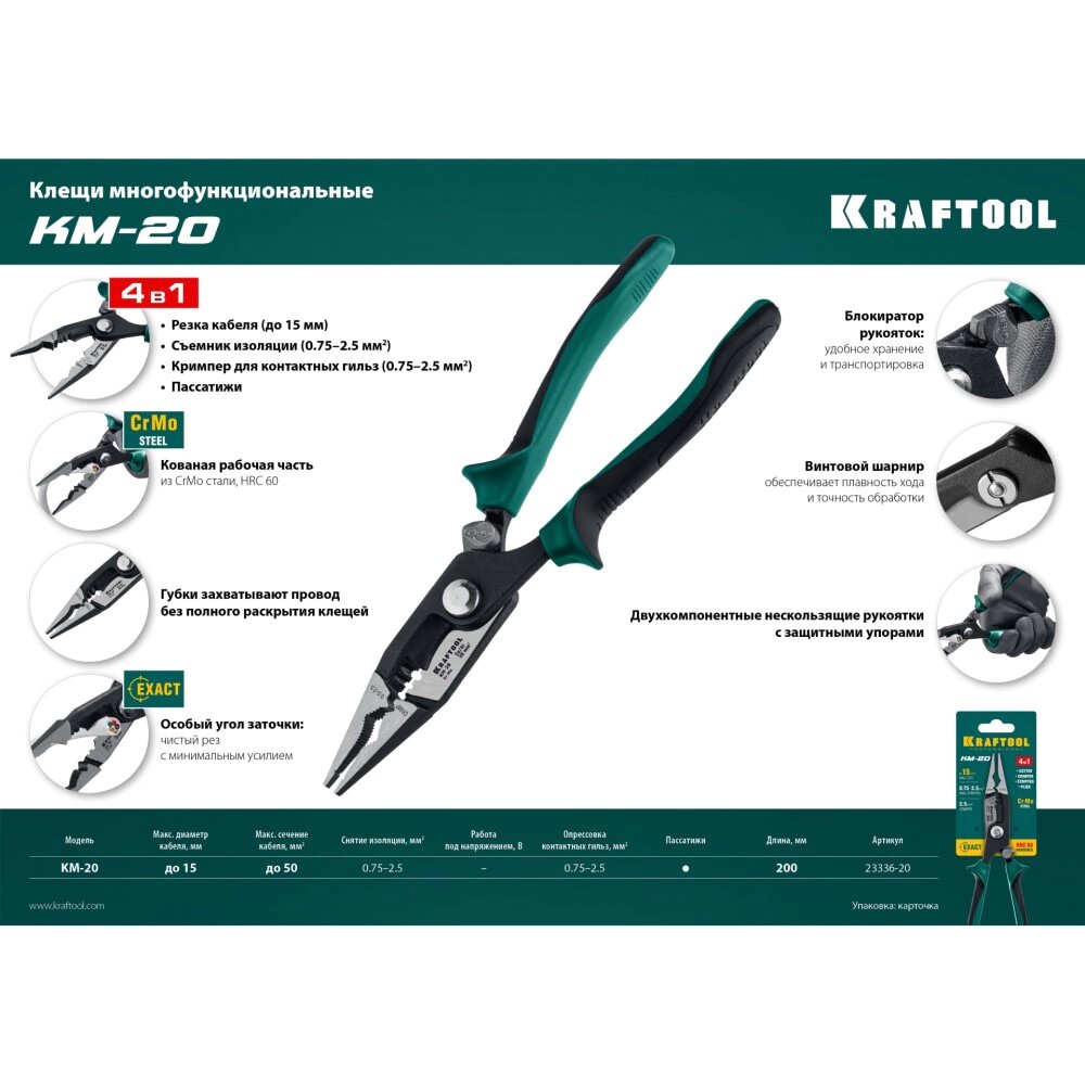 Клещи многофункциональные KM-20 , KRAFTOOL 23336-20 интересное: