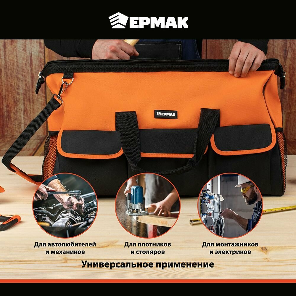 Сумка для инструмента большая с ремнем ермак, органайзер для хранения инструмента, 25 карманов, 61х30х25 см интересное: